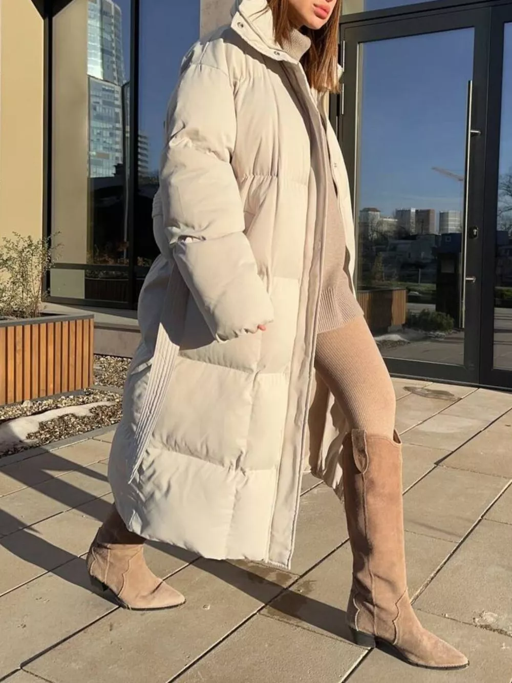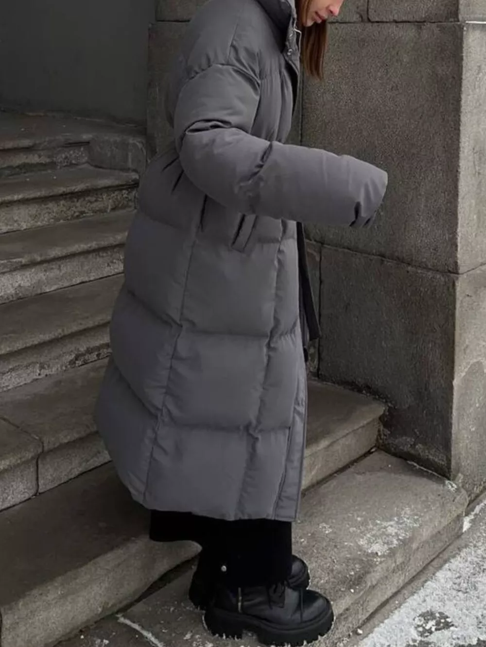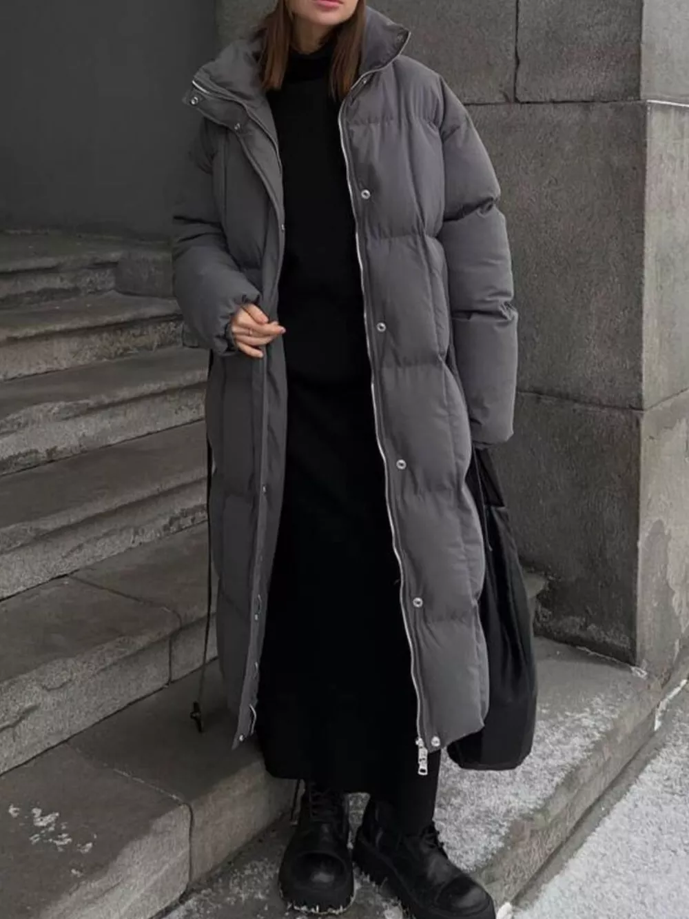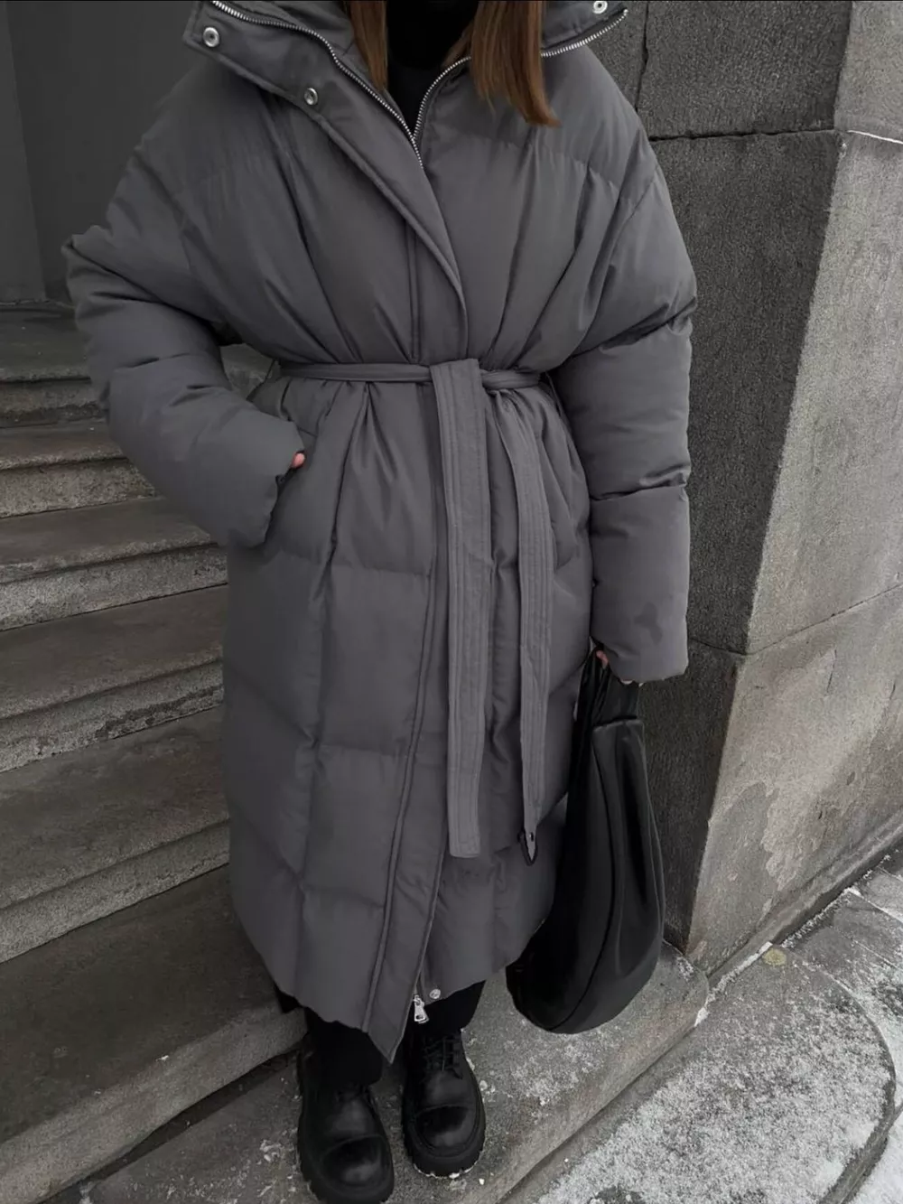 Longline Padded Winter Coat with Belted