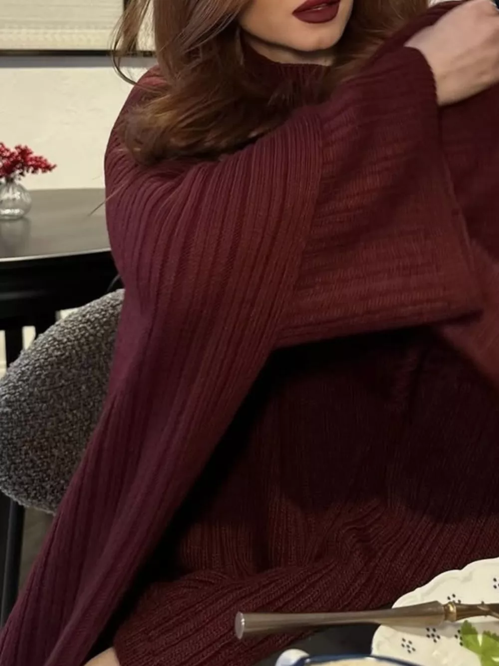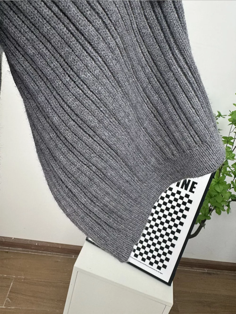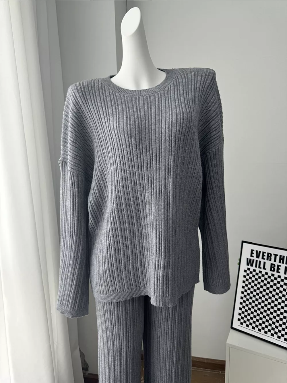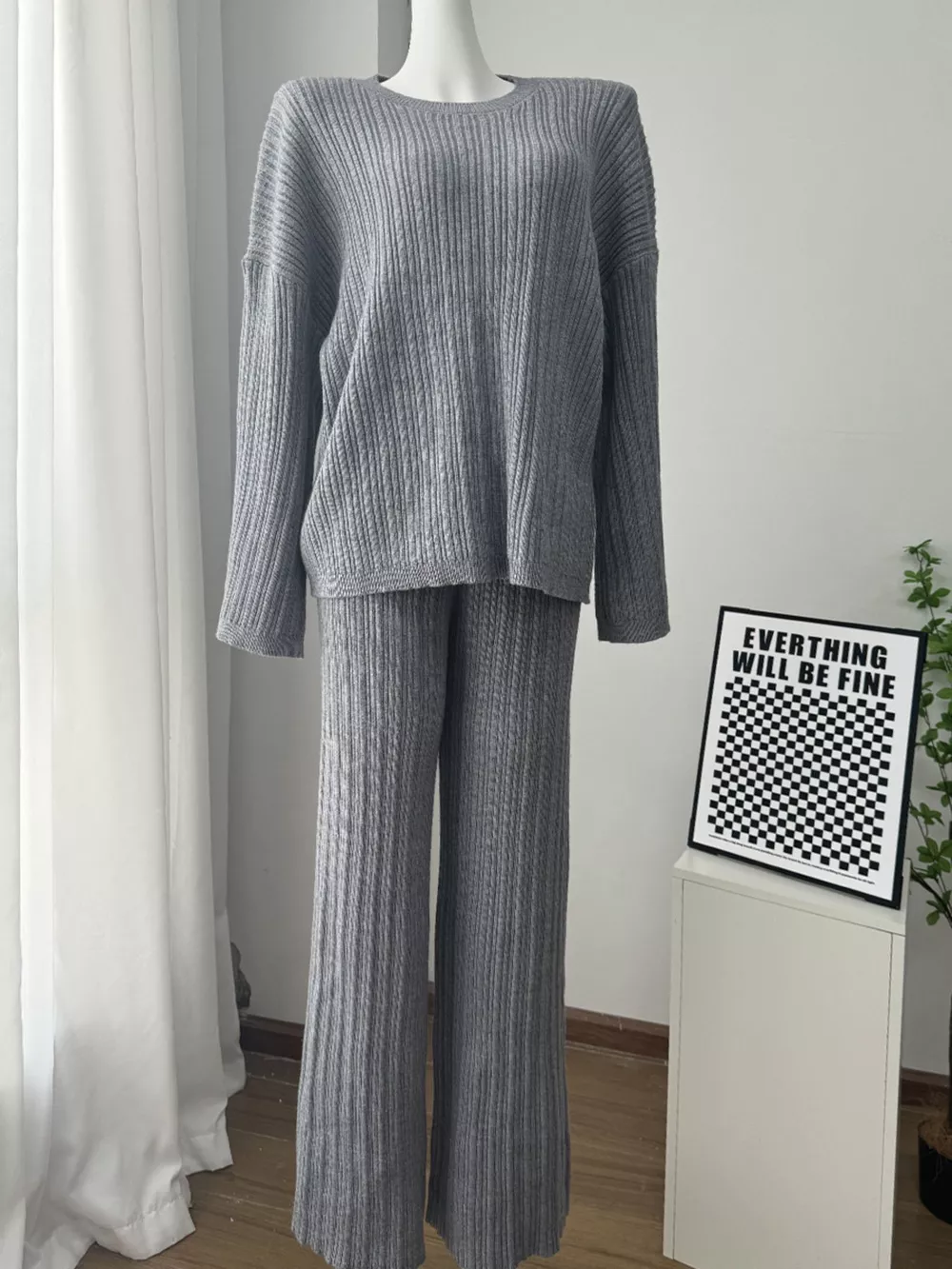 3-Piece Crew Neck Ribbed Sweater and Wide-Leg Pants Set with Scarf