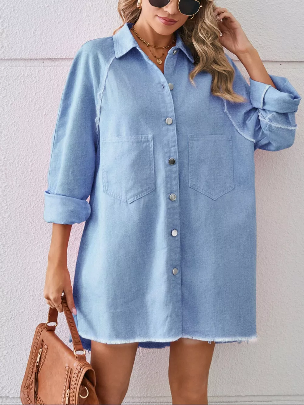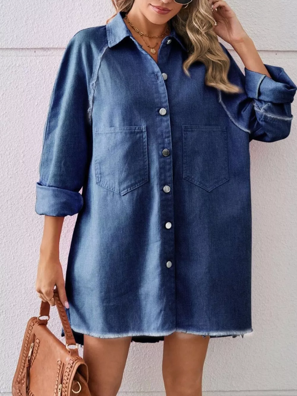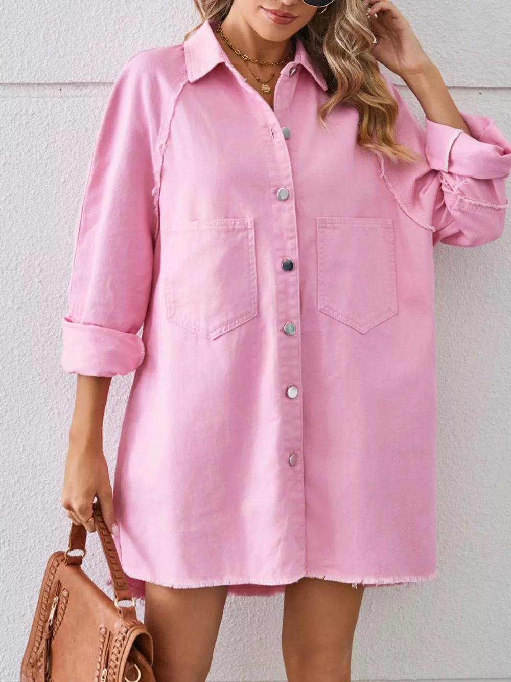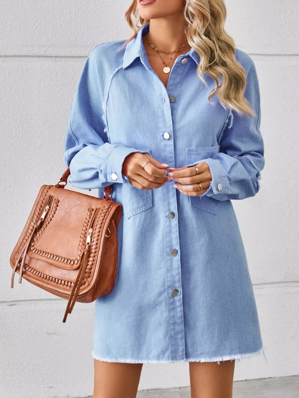 Button-Down Raw Hem Denim Dress