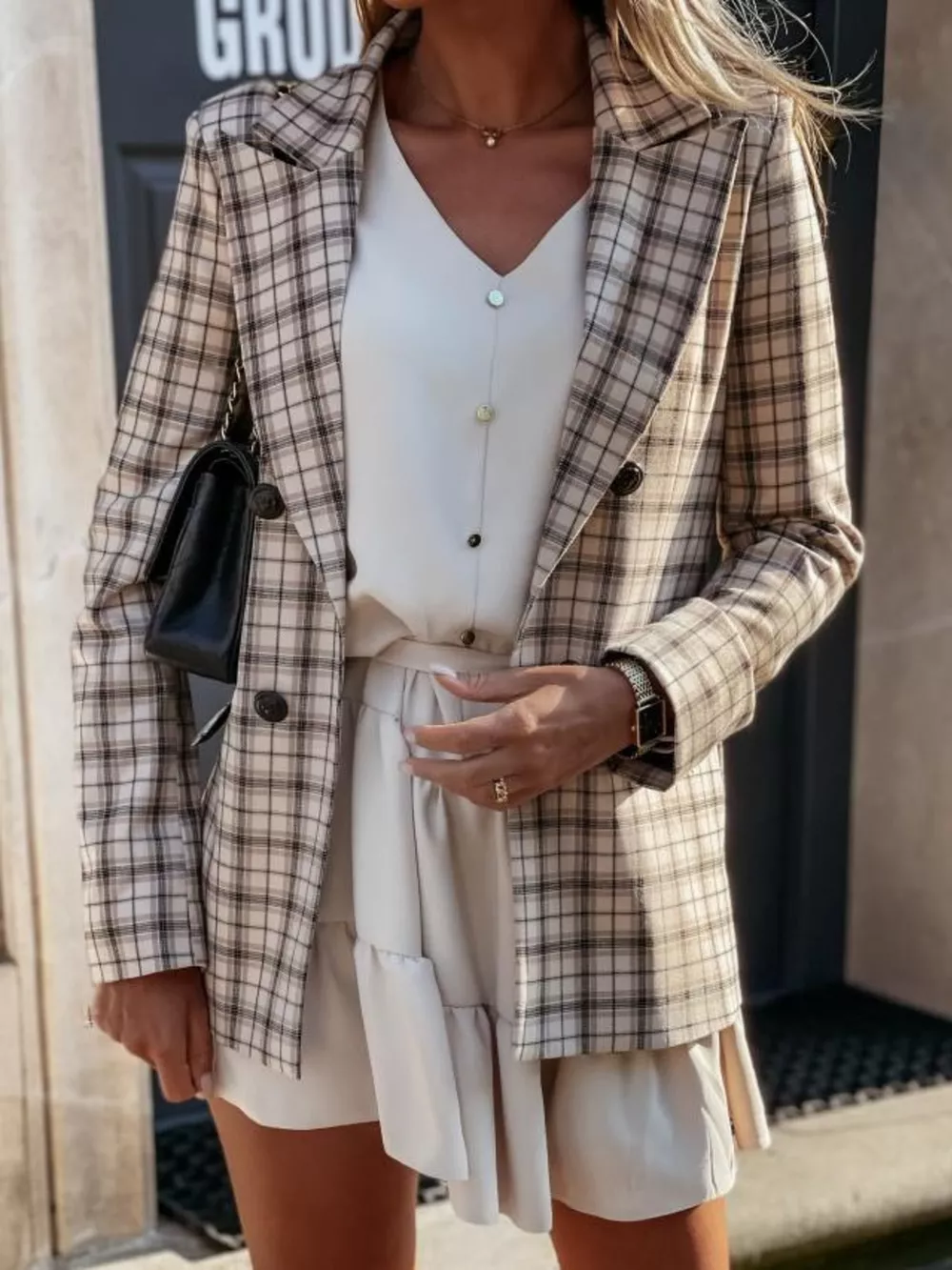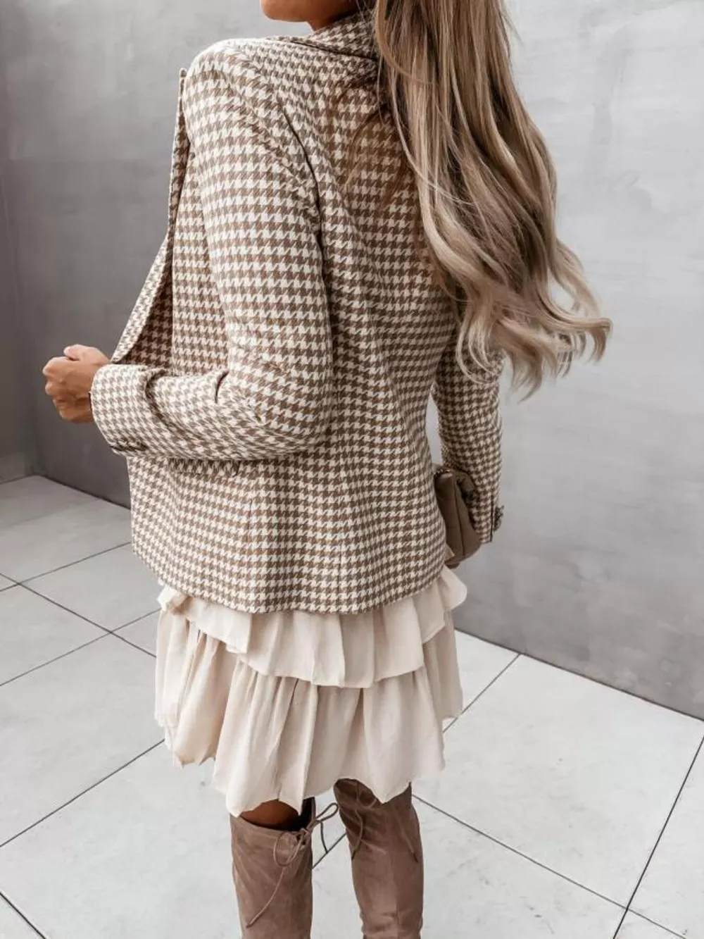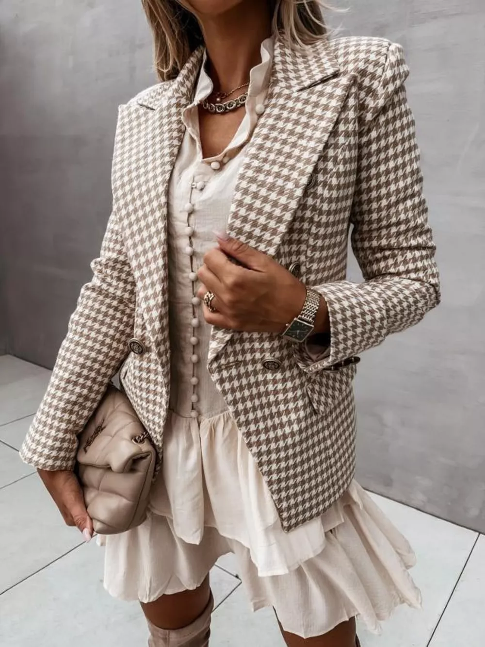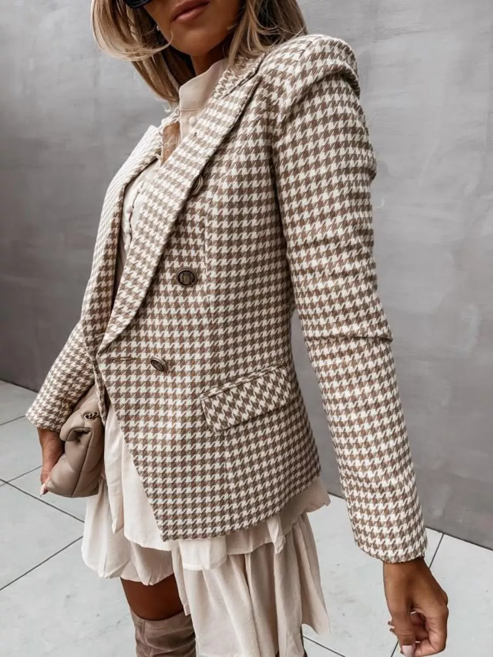 Houndstooth Double-Breasted Blazer