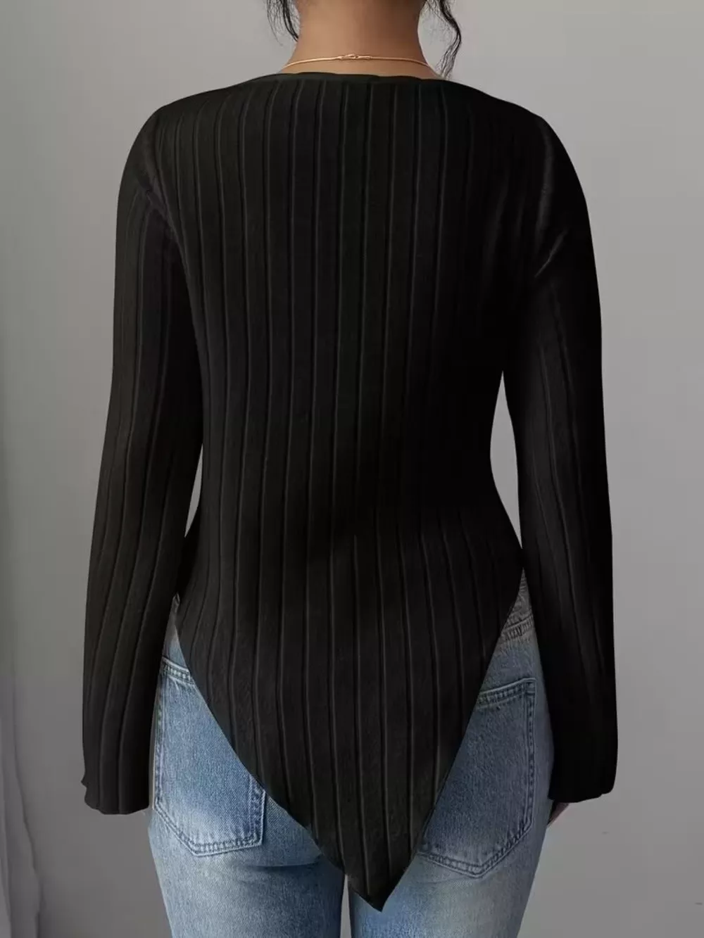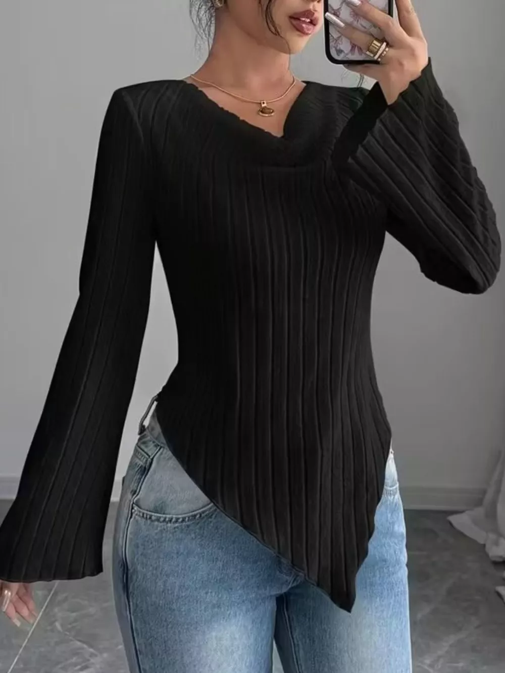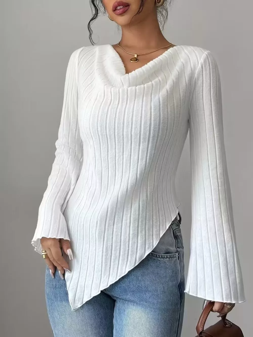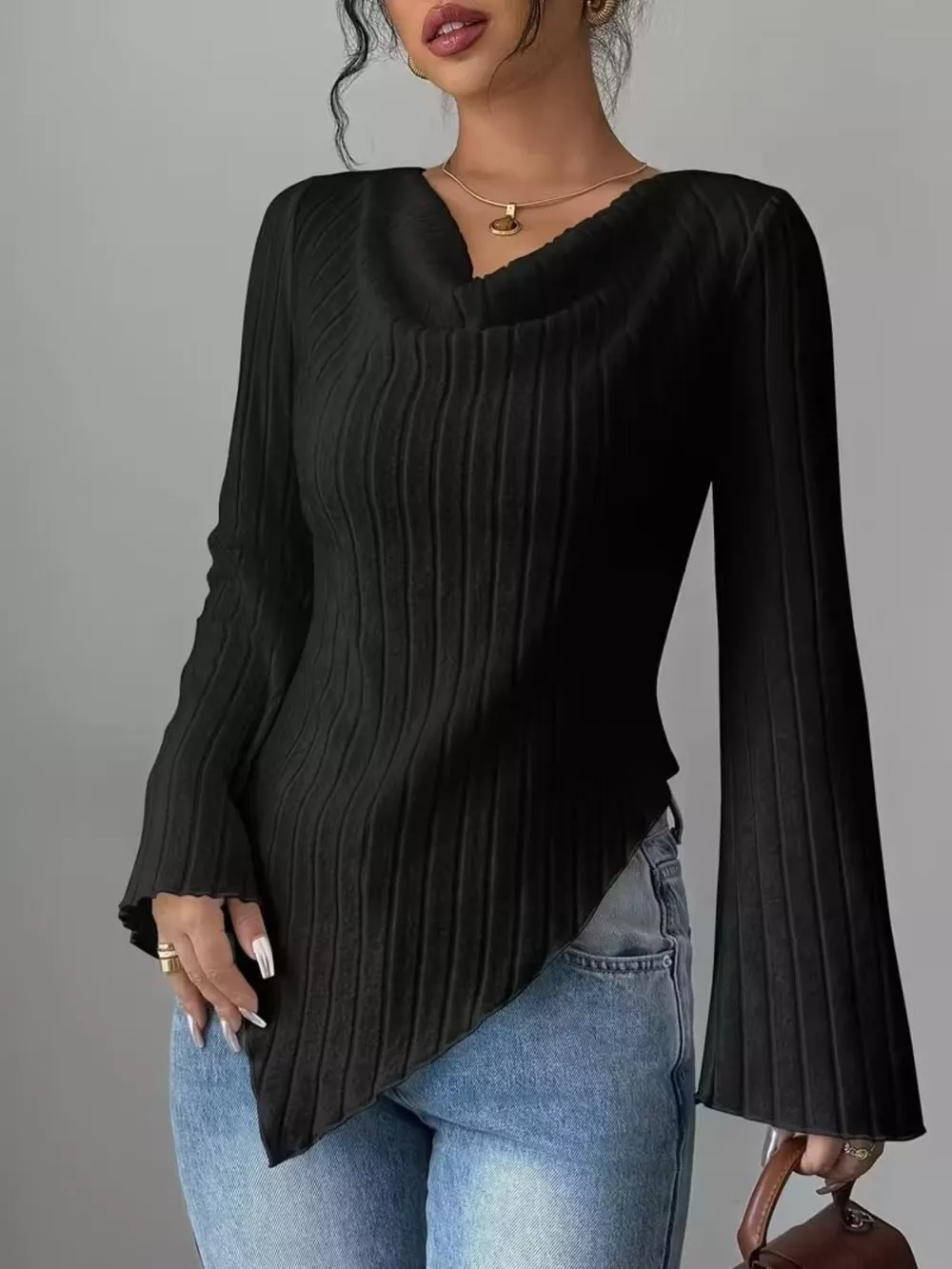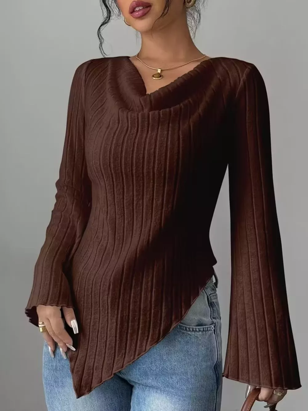 Cowl Neck Ribbed Knit Top