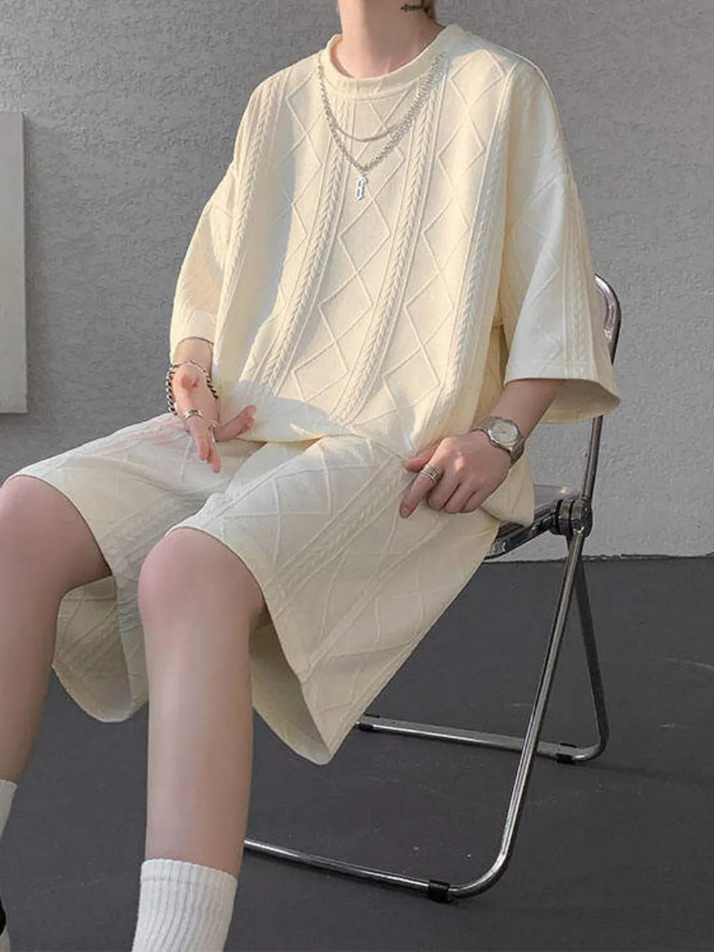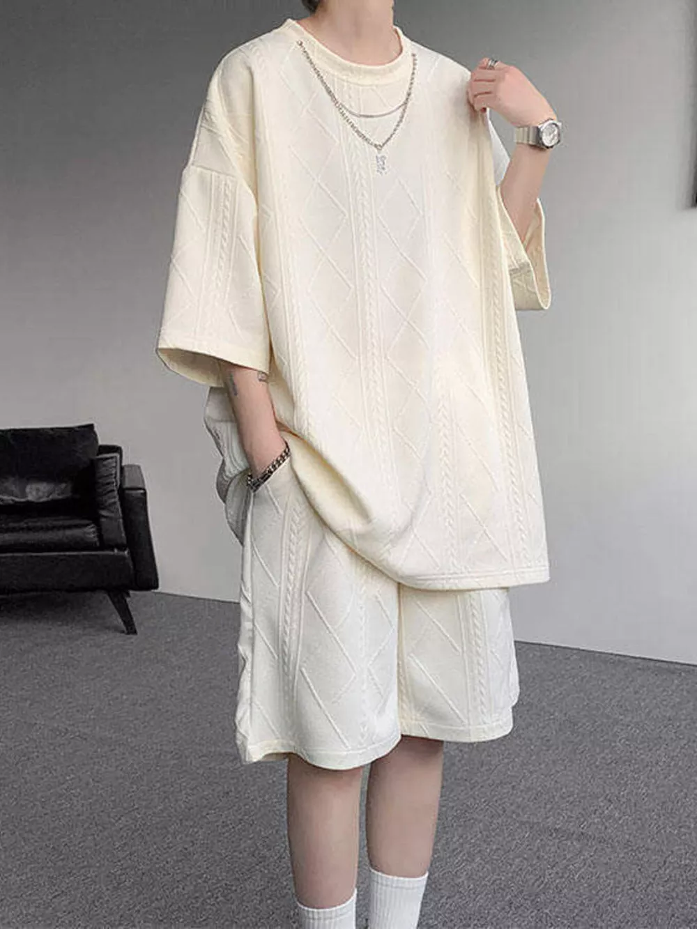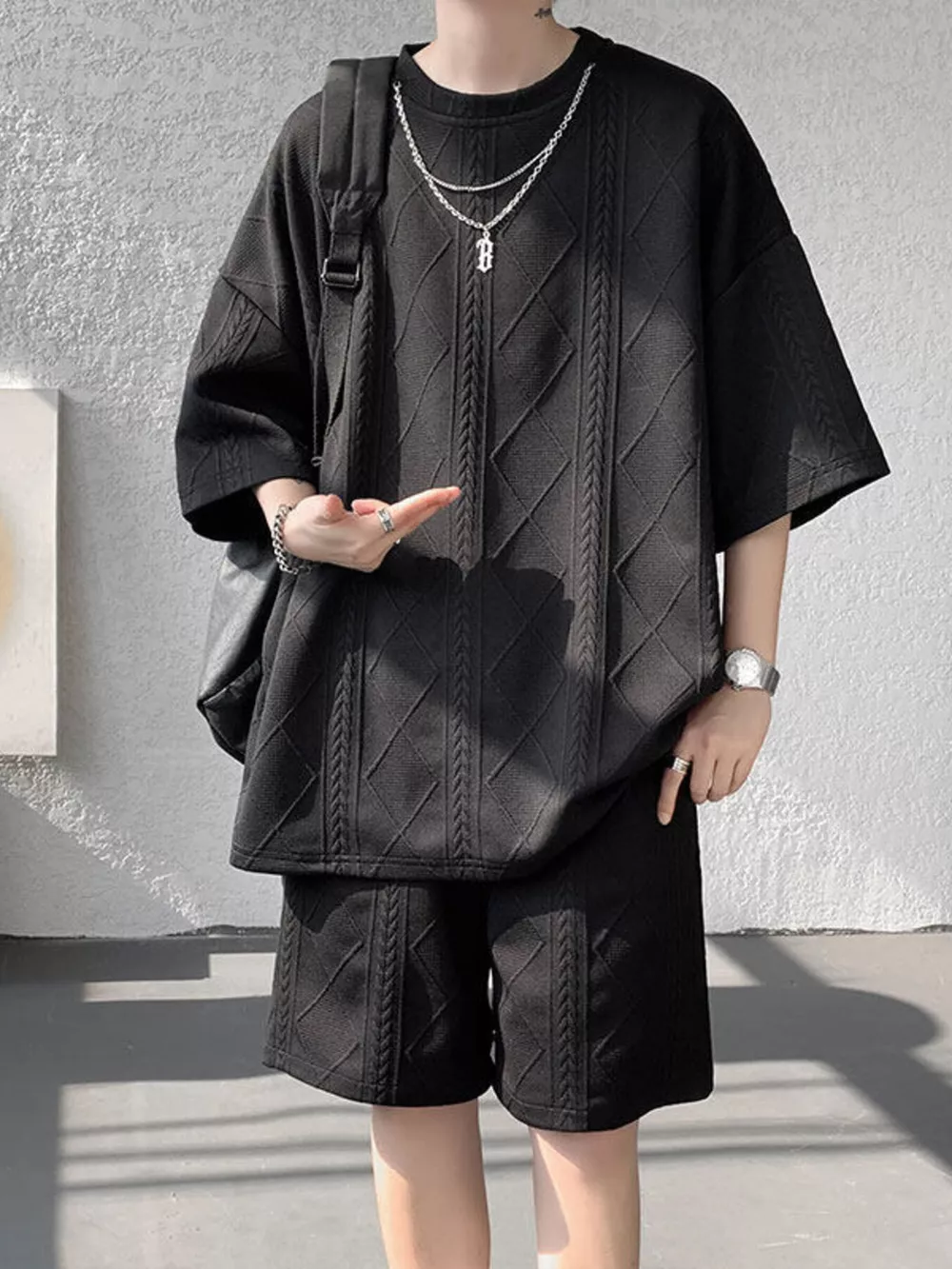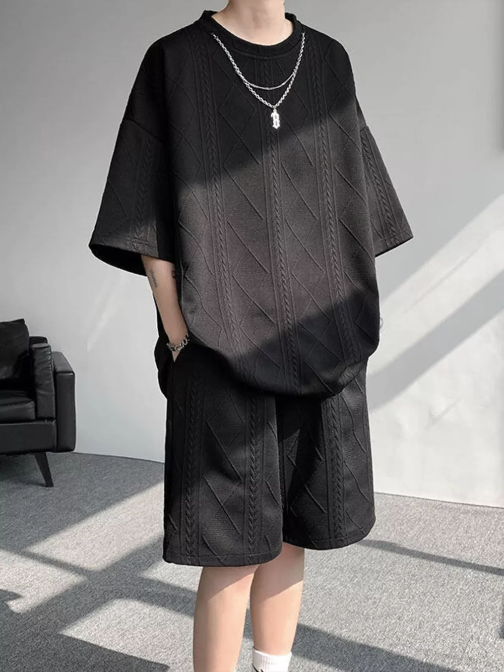 Men's Plus Size Textured Relaxed Fit Top and Shorts Set