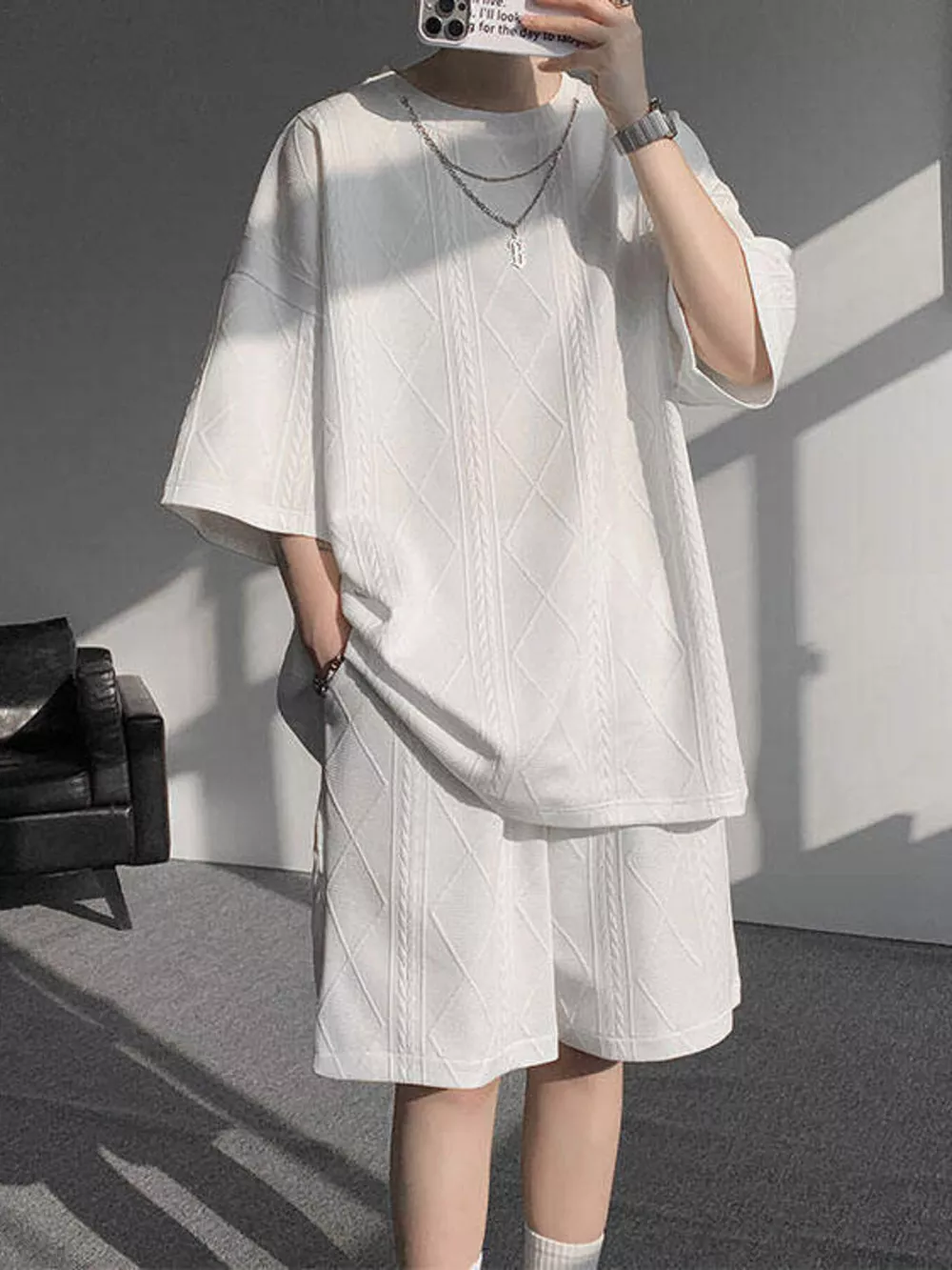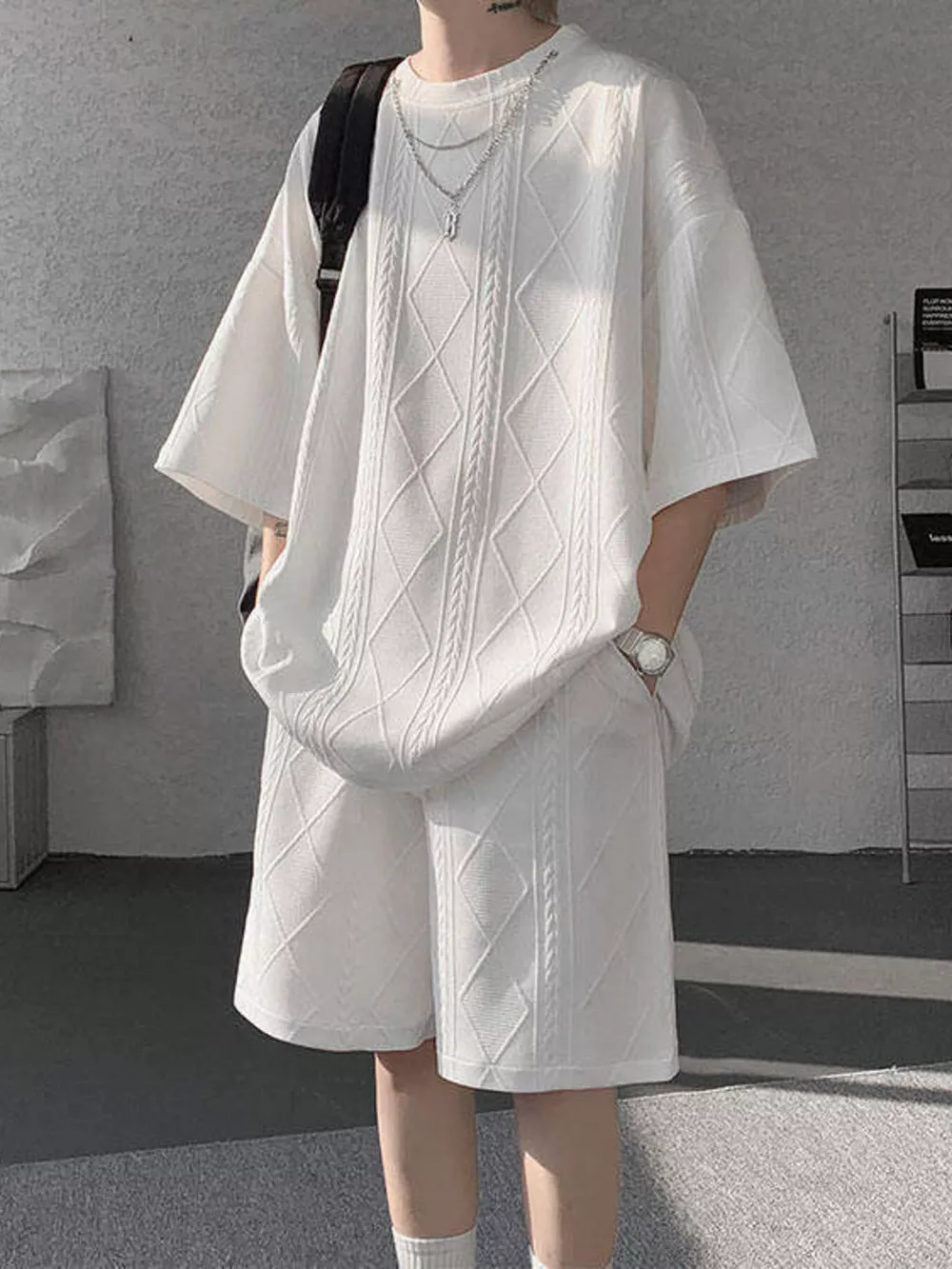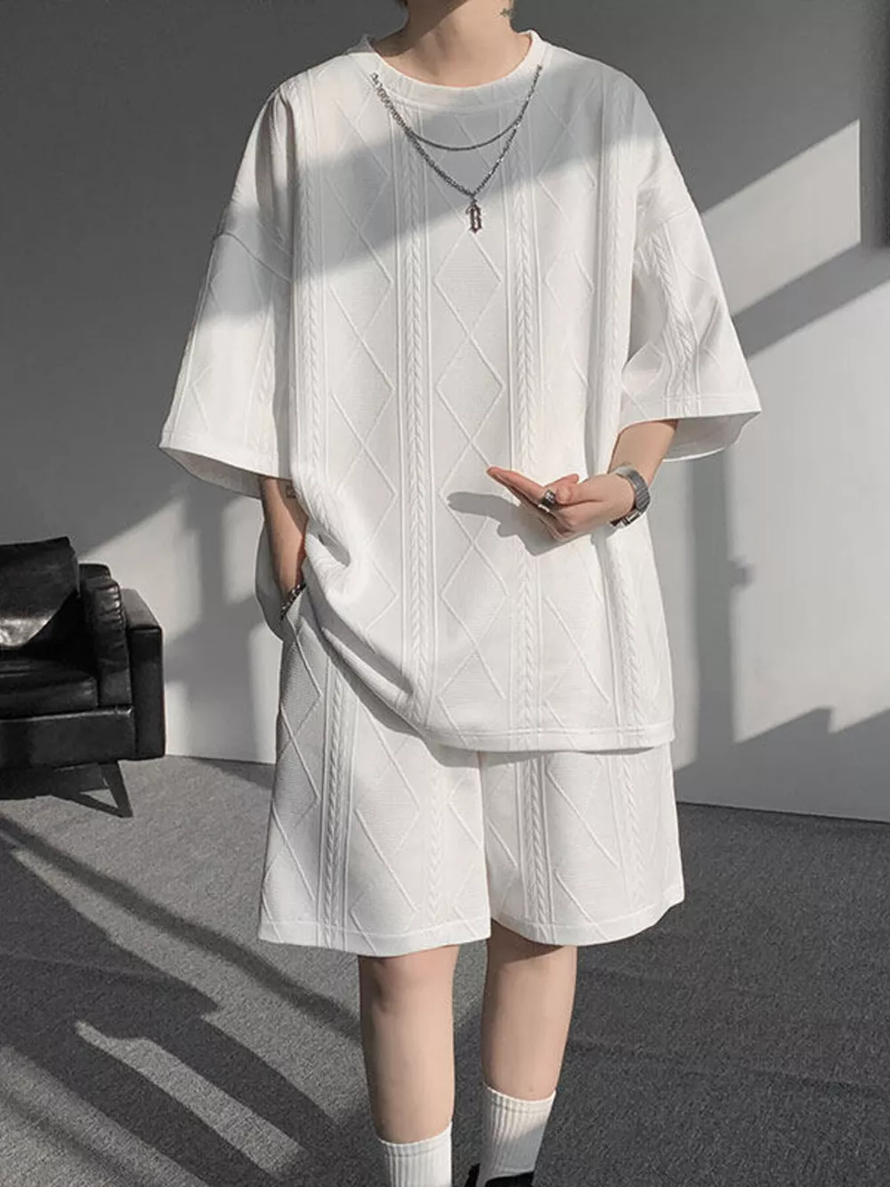 Men's Plus Size Textured Relaxed Fit Top and Shorts Set