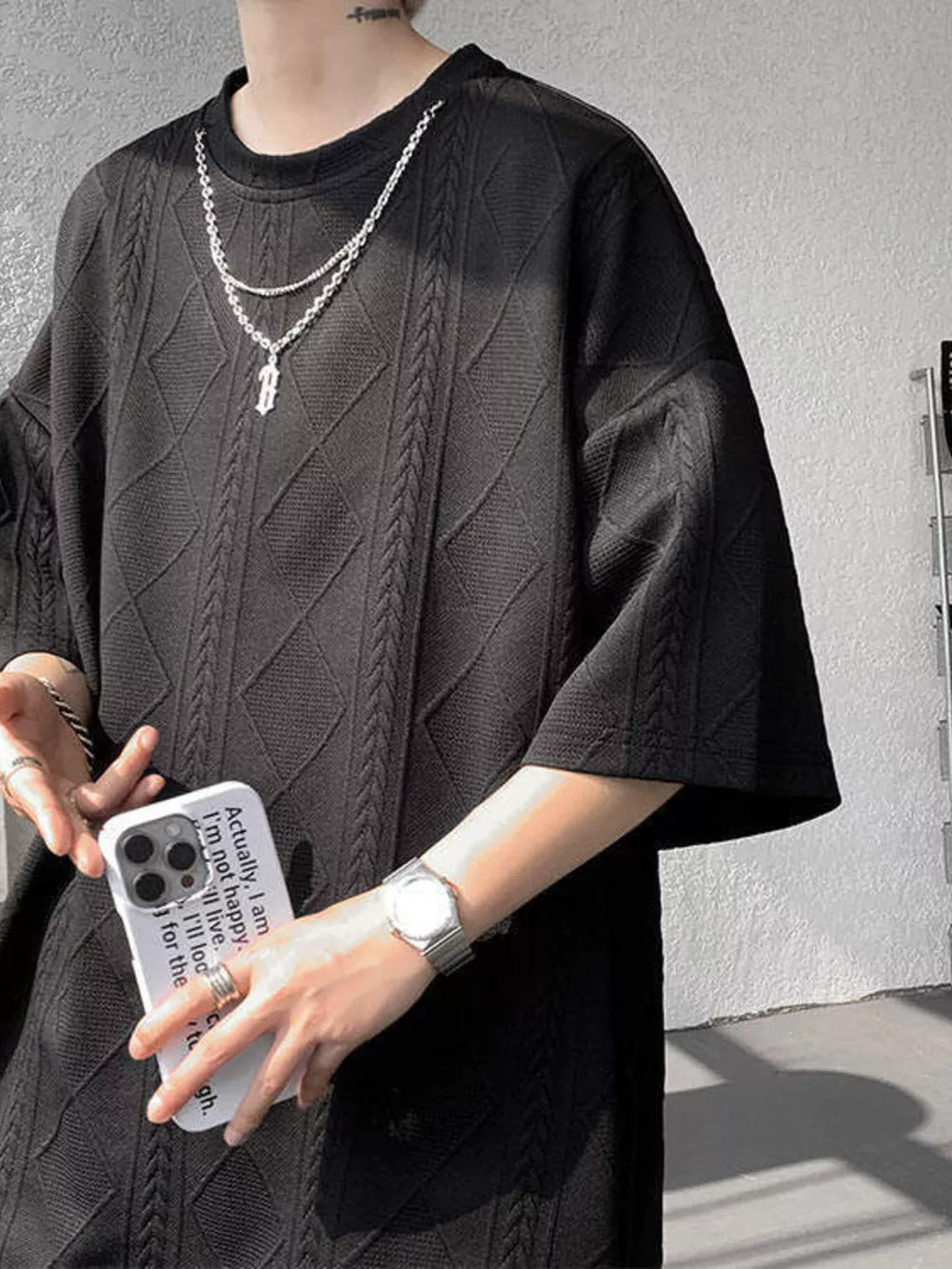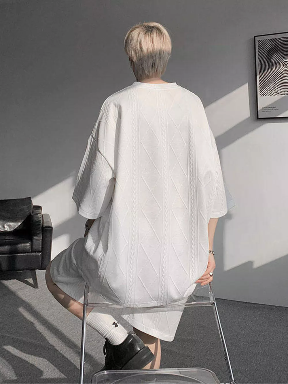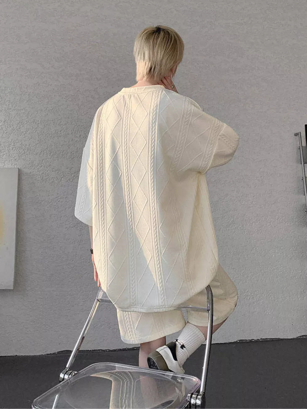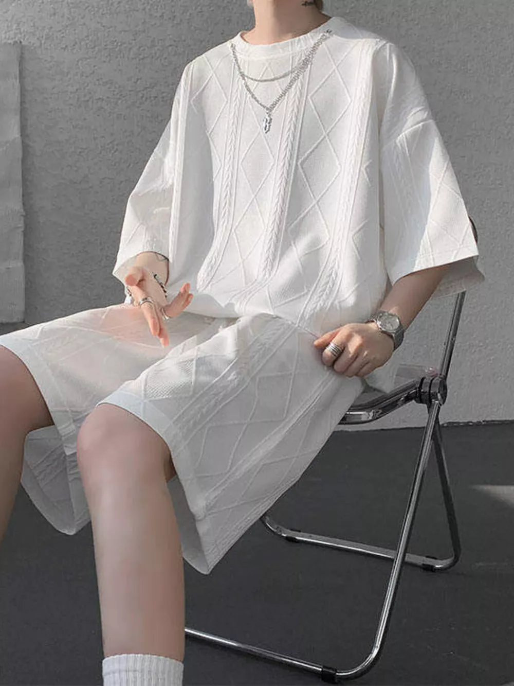 Men's Plus Size Textured Relaxed Fit Top and Shorts Set
