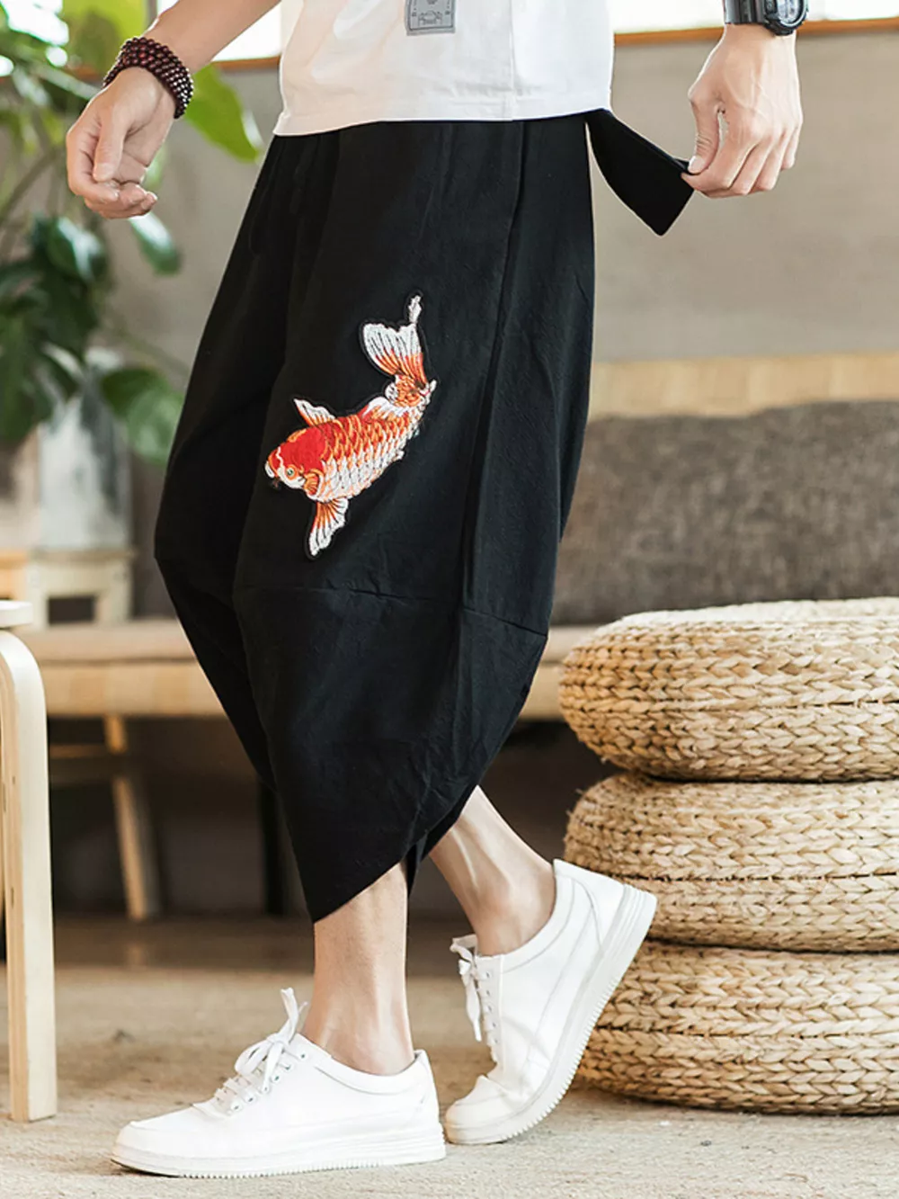 Men's Plus Size Embroidered Koi Fish Harem Pants
