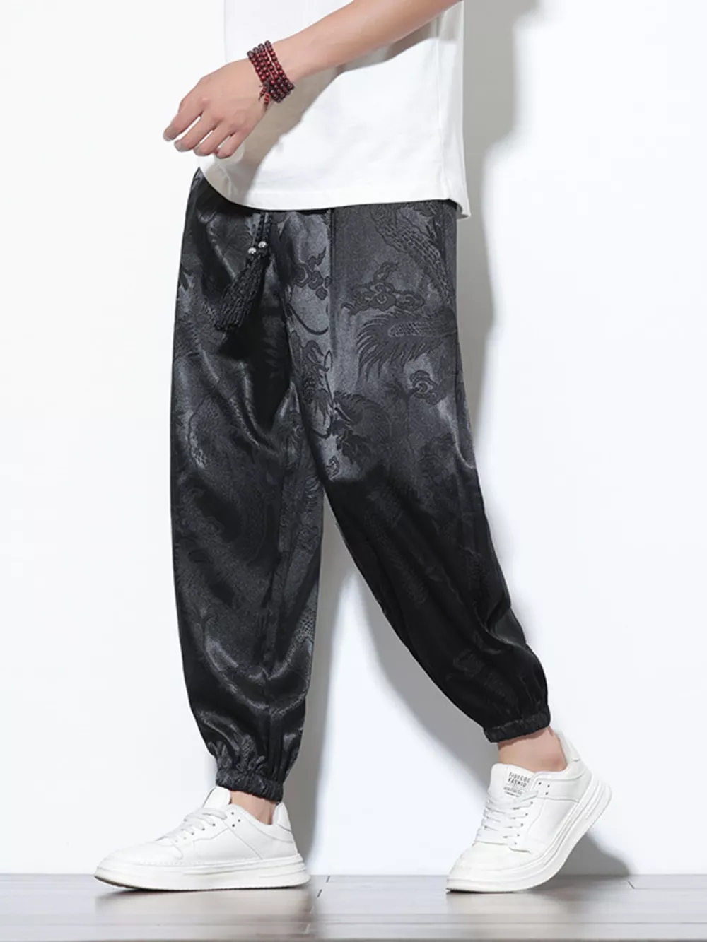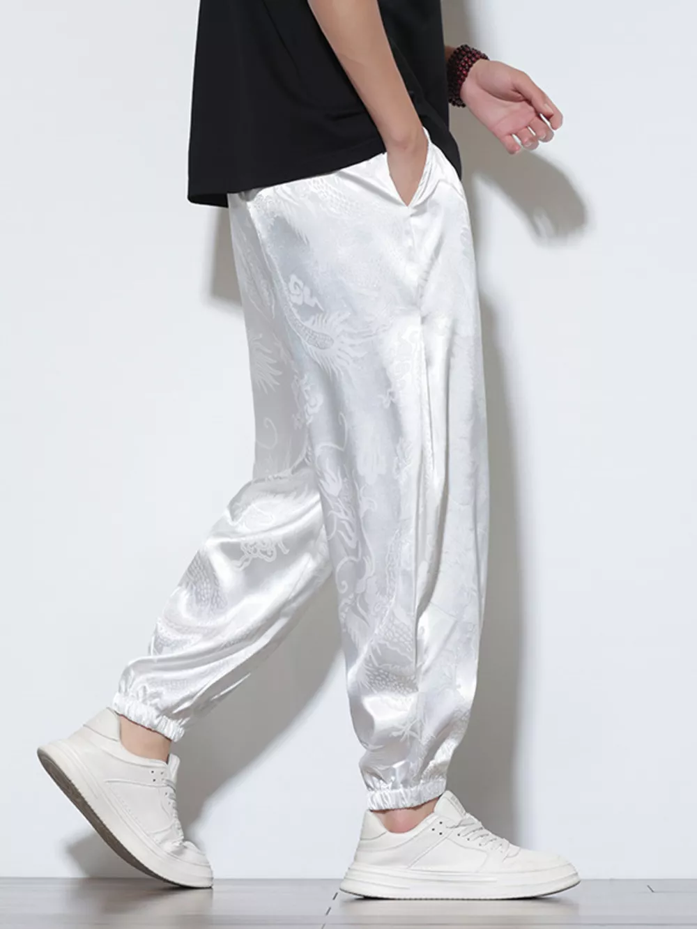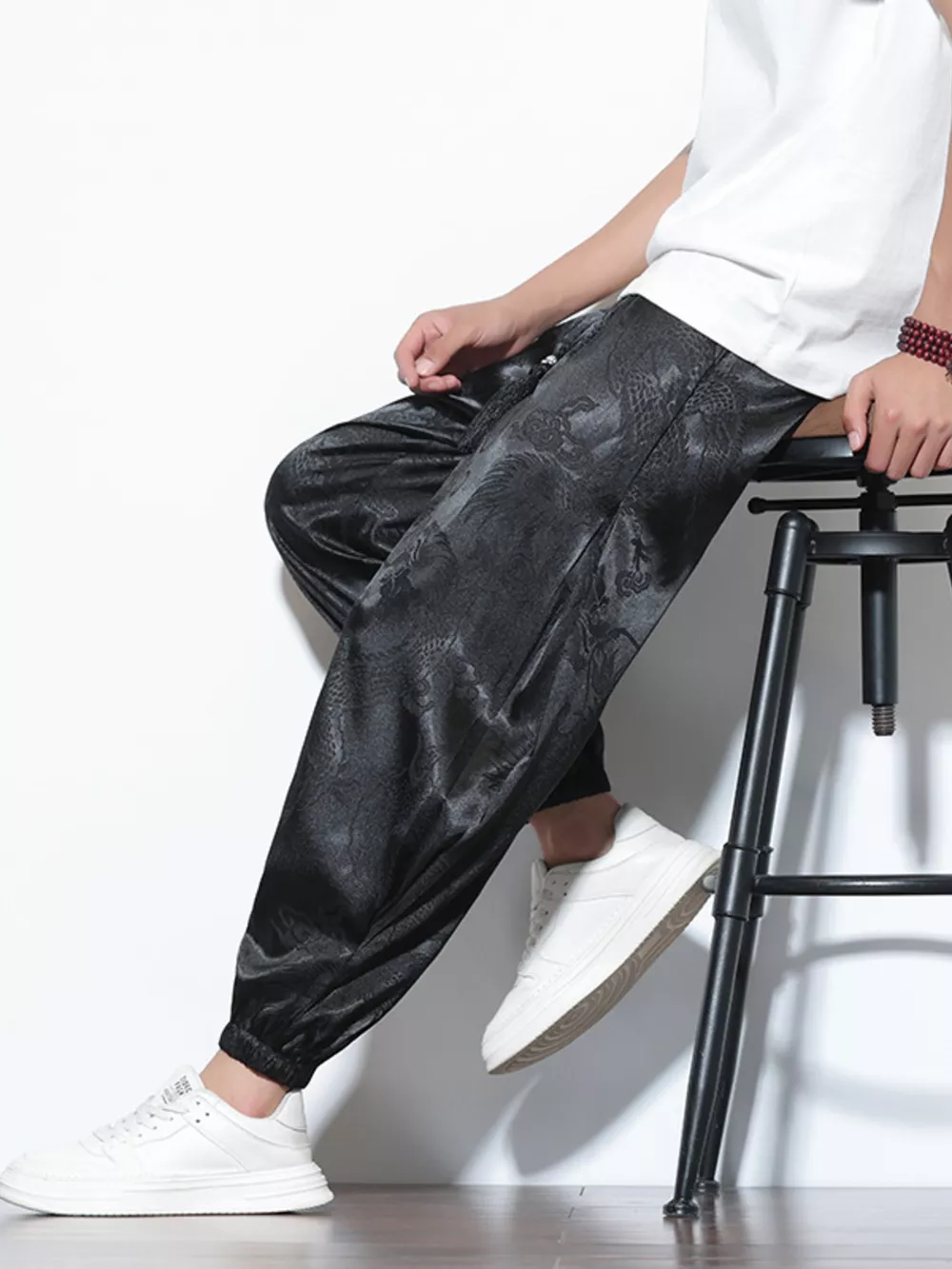 Men's Plus Size Dragon Pattern Silk Joggers