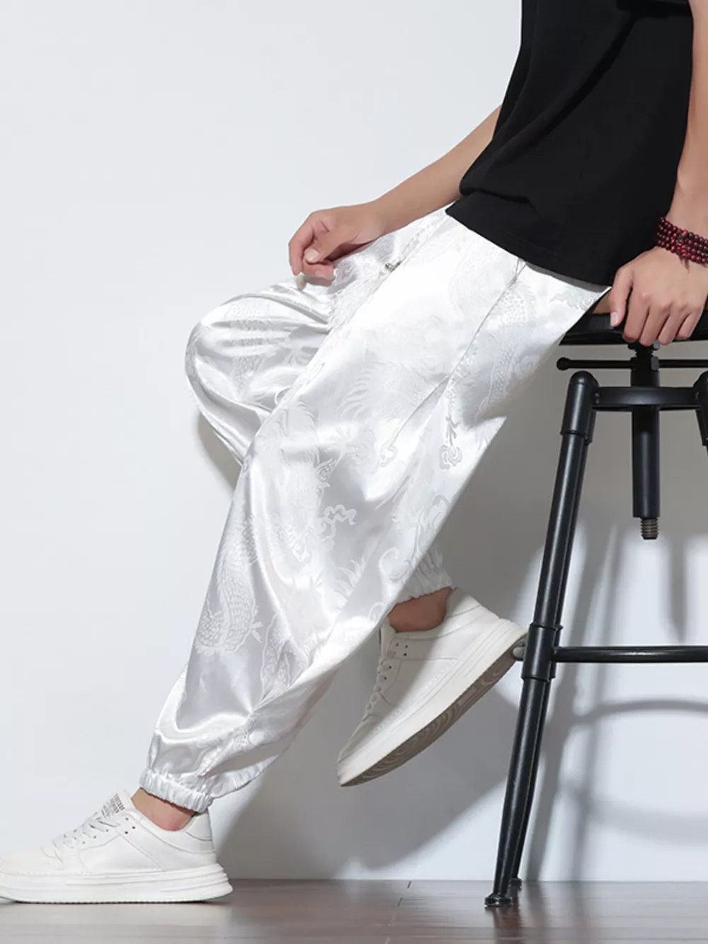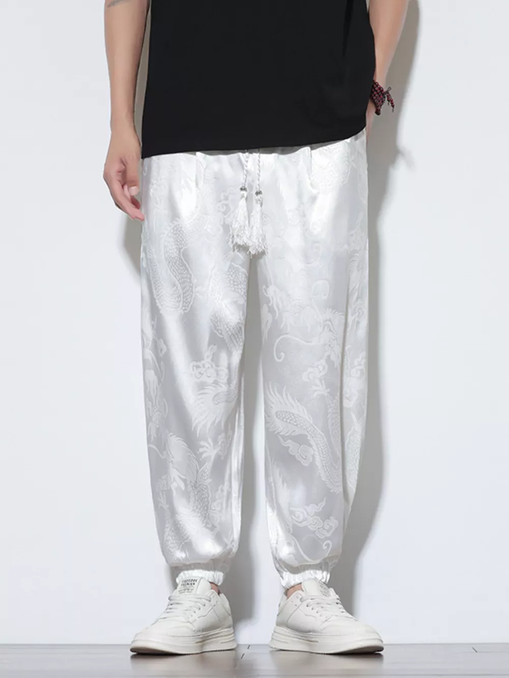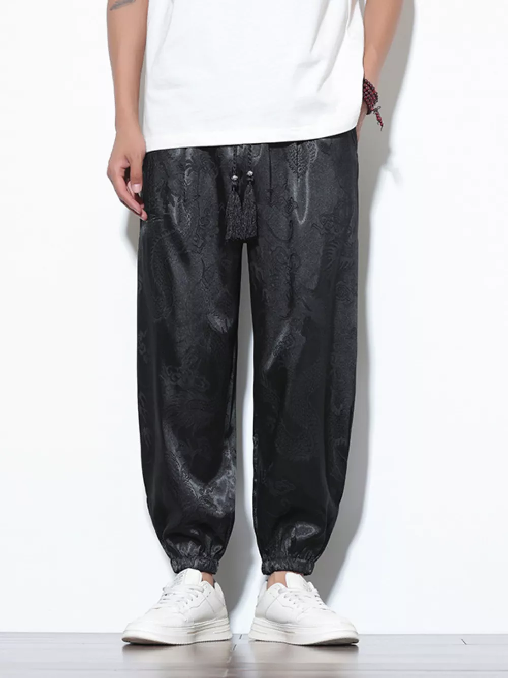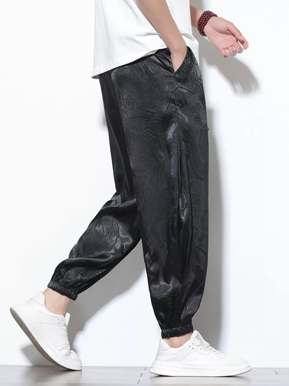 Men's Plus Size Dragon Pattern Silk Joggers