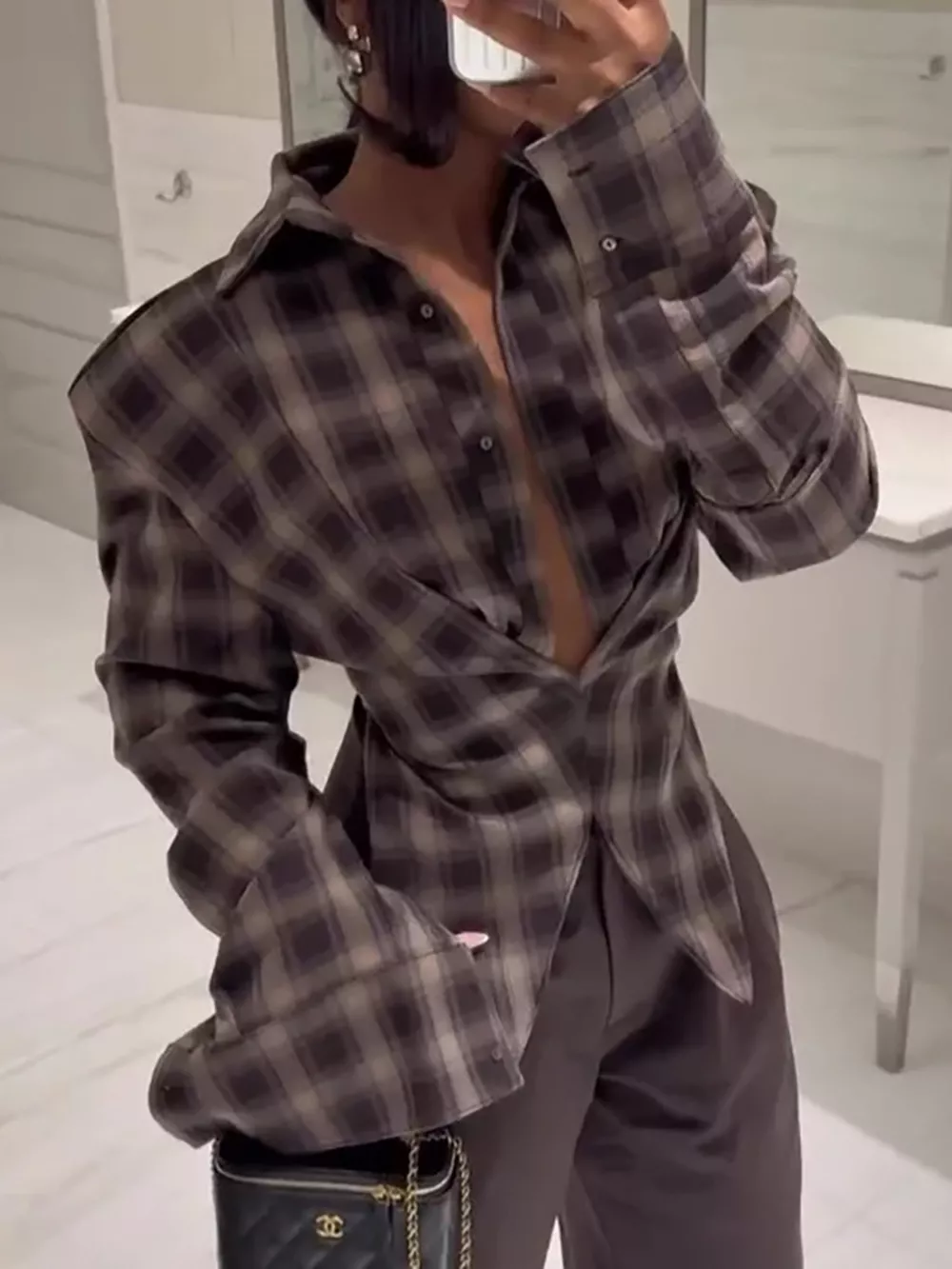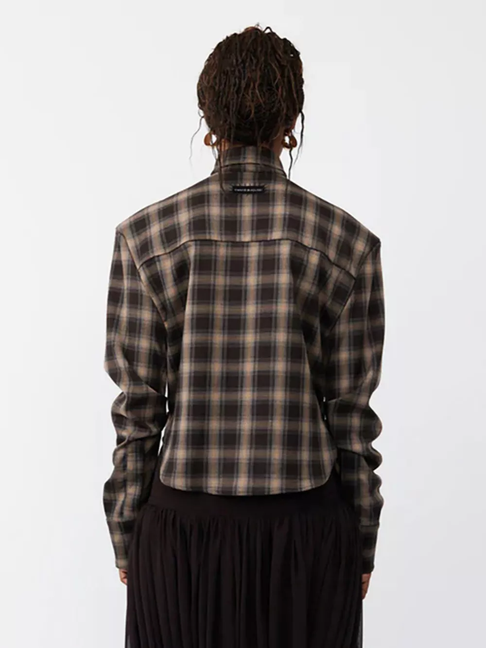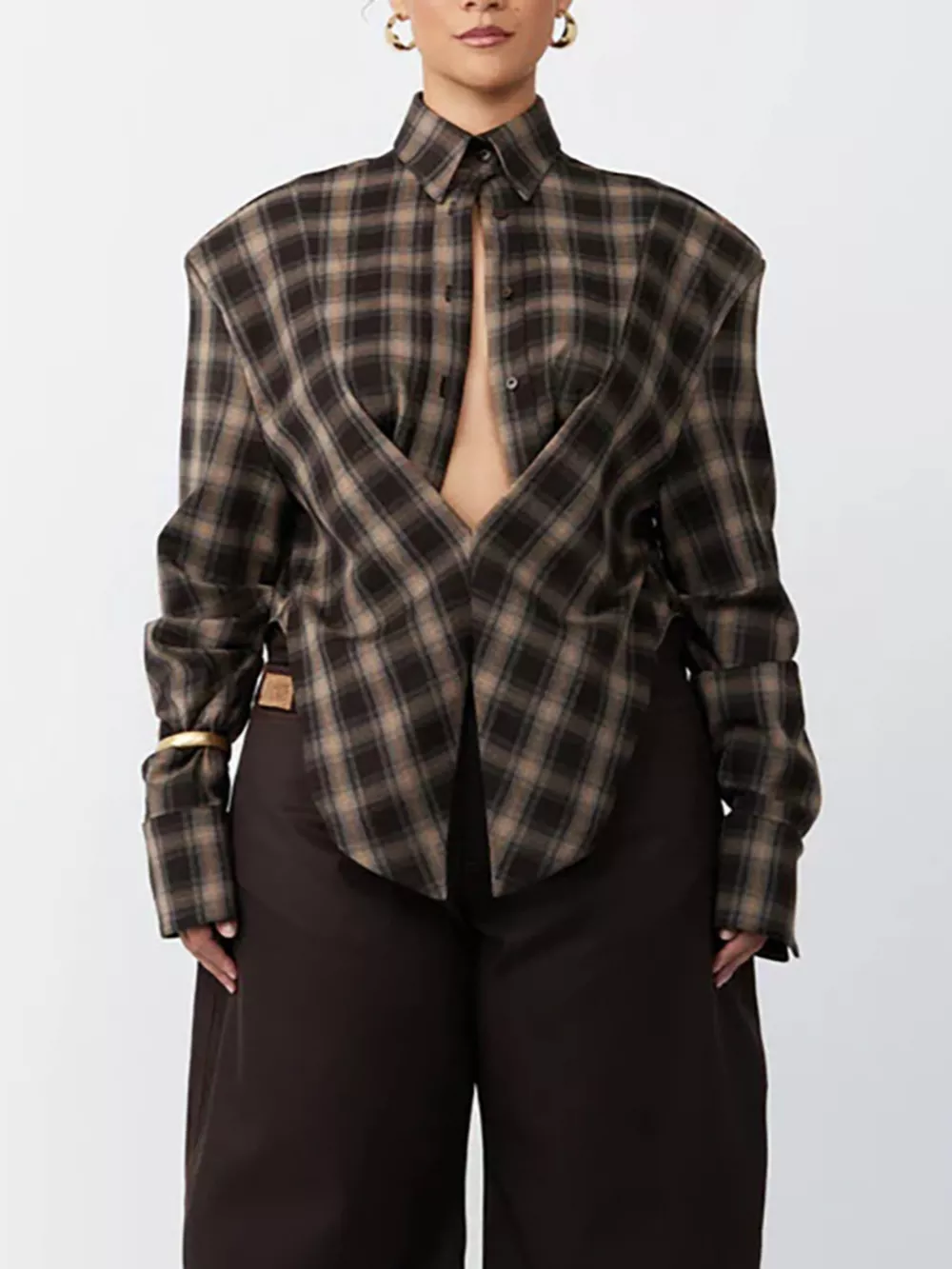 Ruched Plaid Long Sleeve Shirt