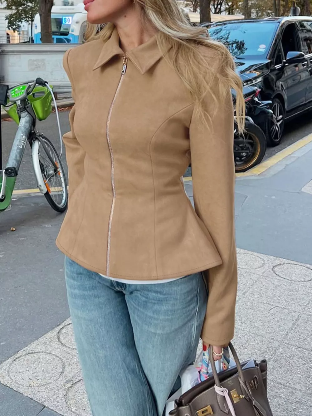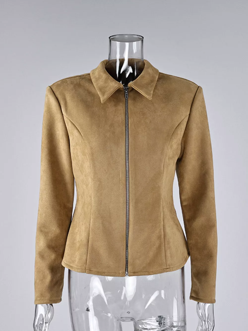 Suede Zip-Up Fitted Jacket