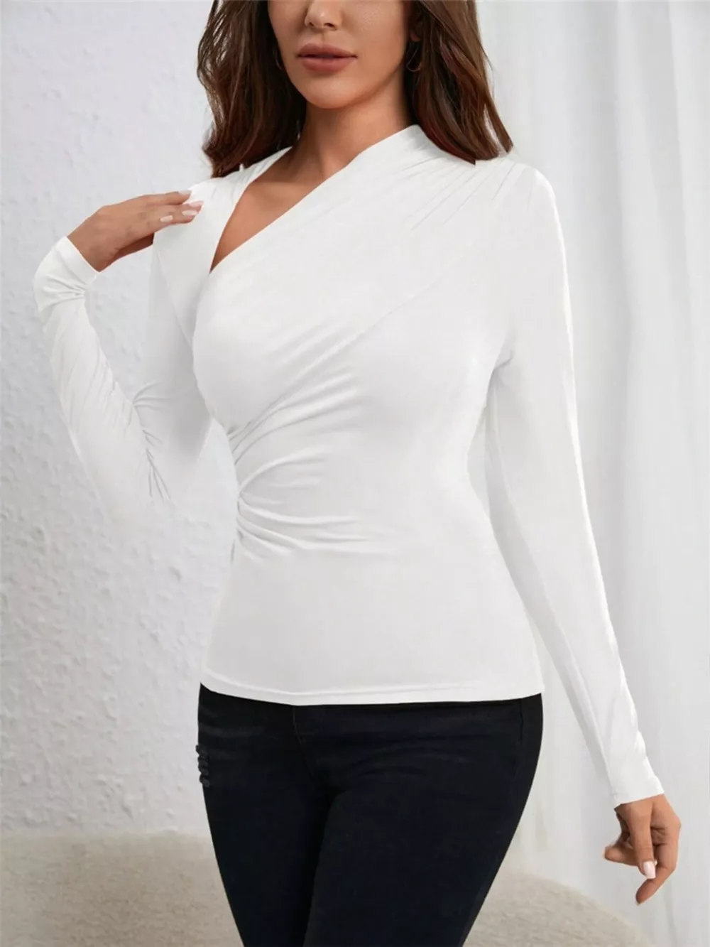 Asymmetrical Cutout Ruched Long Sleeve Top