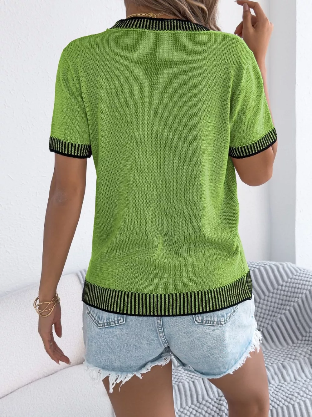 Striped Trim Knit Round Neck Sweater