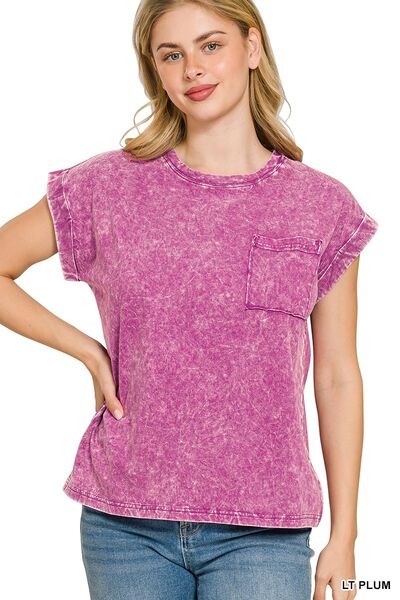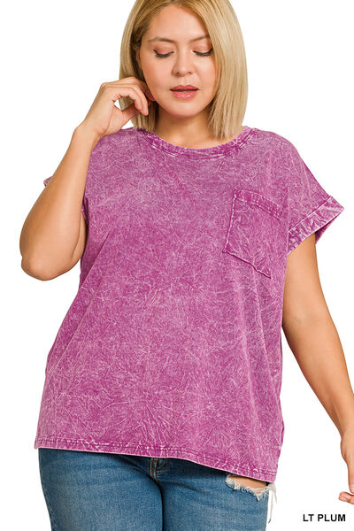 Zenana Full Size Crinkle Washed Round Neck Folded Short Sleeve Tee Plus Size