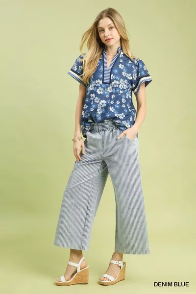 This floral print blouse is a stylish and comfortable addition to any wardrobe. Featuring a flattering short sleeves, it's perfect for warm weather. The relaxed fit ensures all-day comfort, while the lightweight and breathable fabric keeps you cool. The unique striped trim adds a touch of sophistication. Made from a soft and durable material, this blouse is easy to care for and will maintain its vibrant colors wash after wash. Ideal for casual outings or dressing up for a special occasion, this versatile blouse is a must-have.