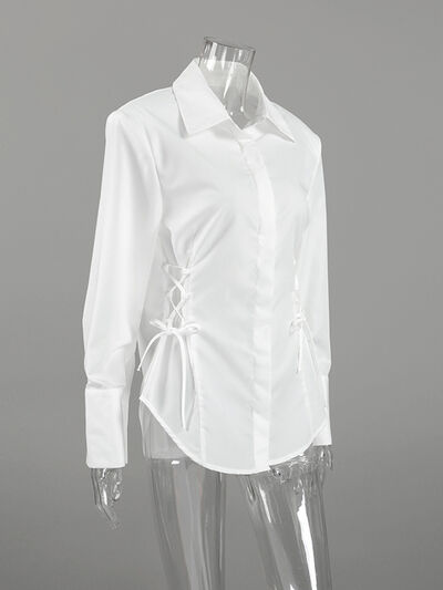 Side Lace Up Button Up Shirt