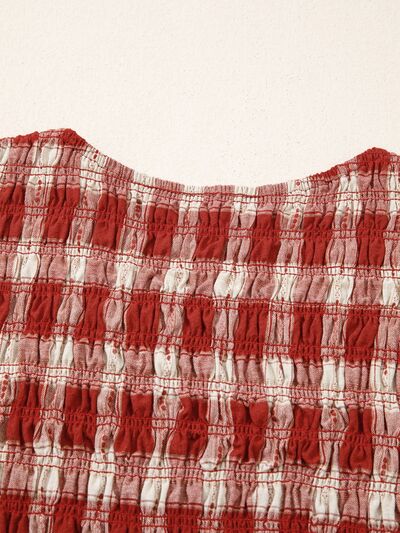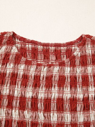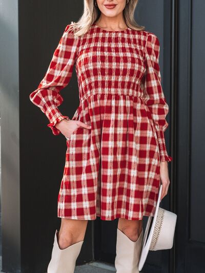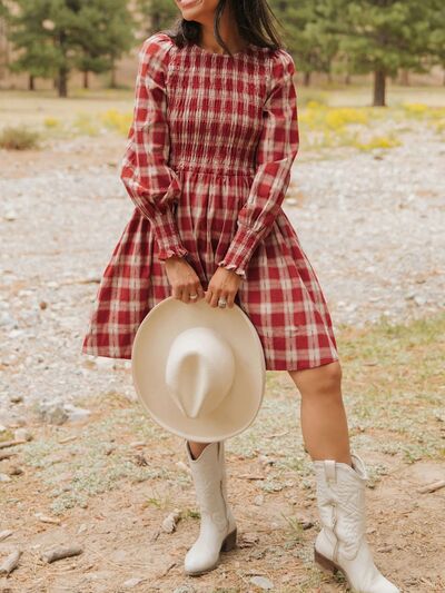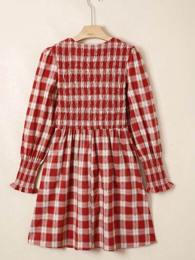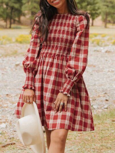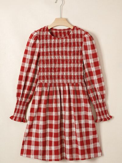 Plaid Print Smocked Puff Sleeve Mini Dress