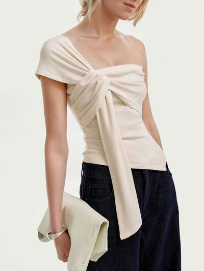 One-Shoulder Knot Detail T-Shirt