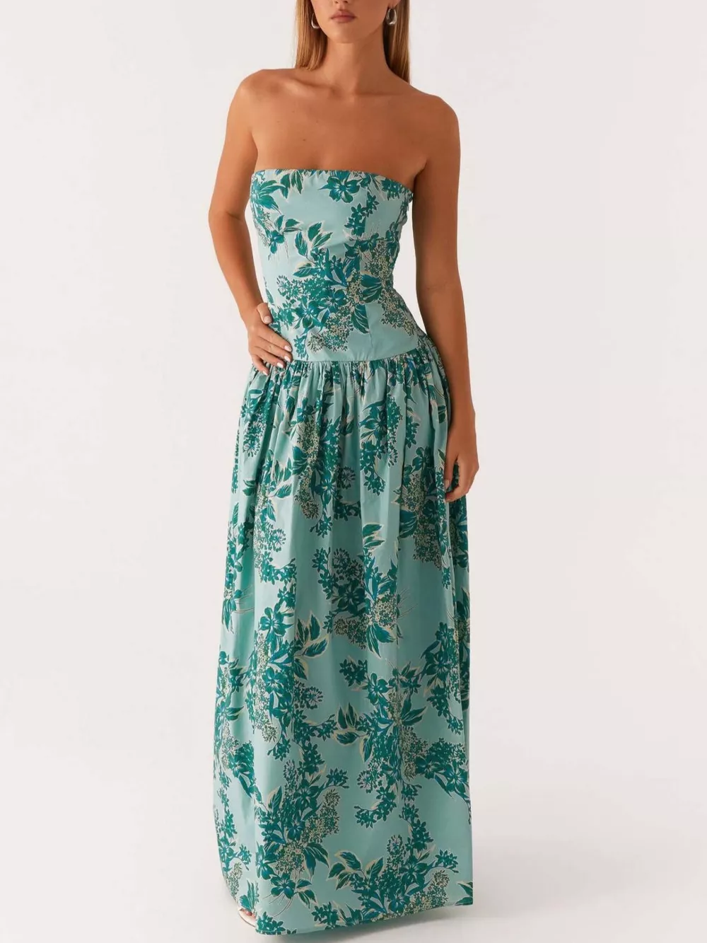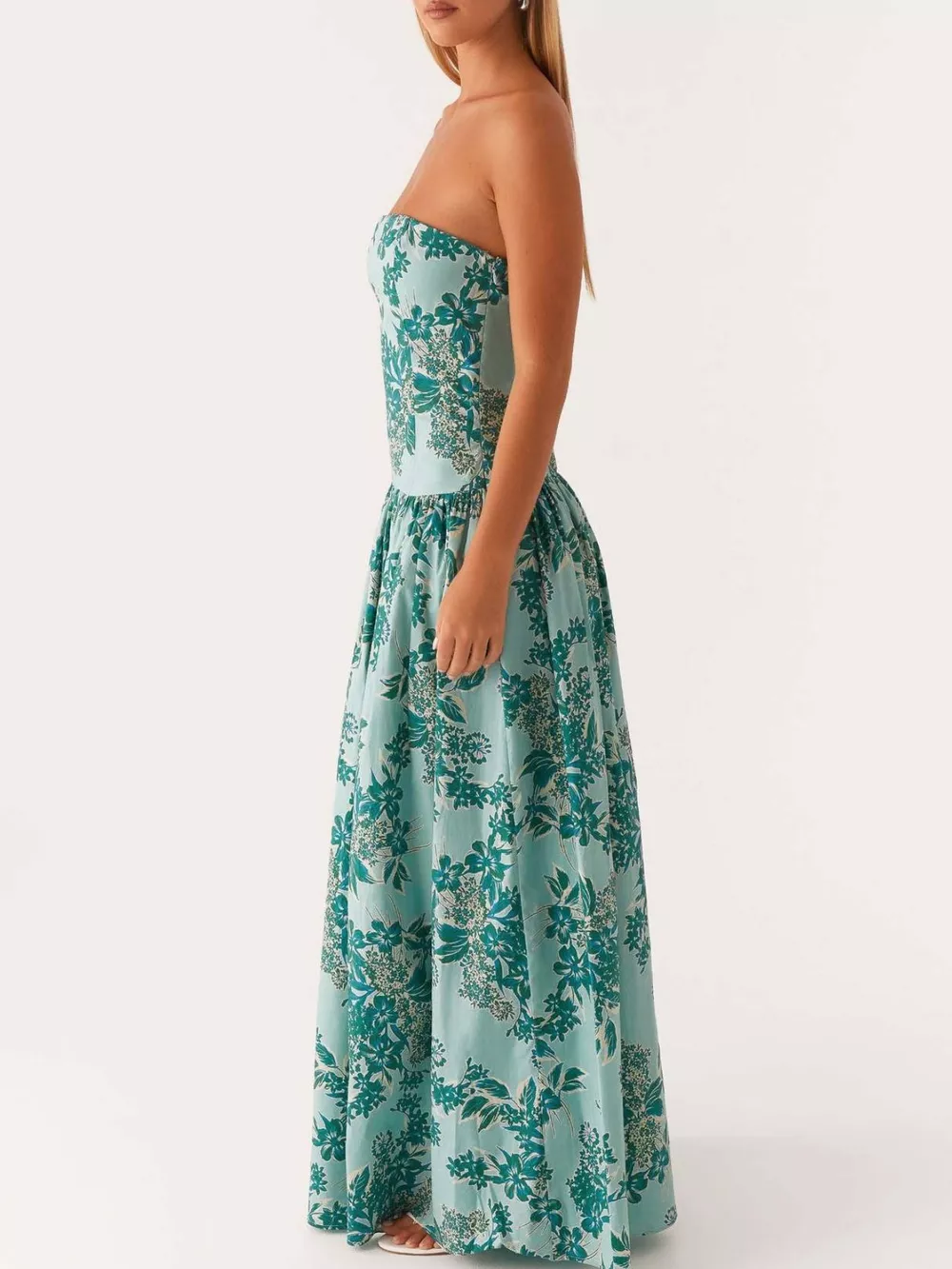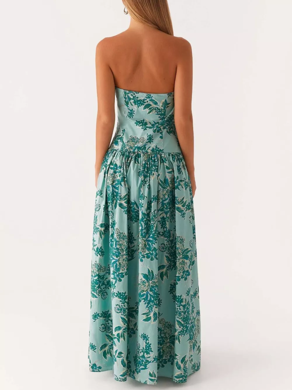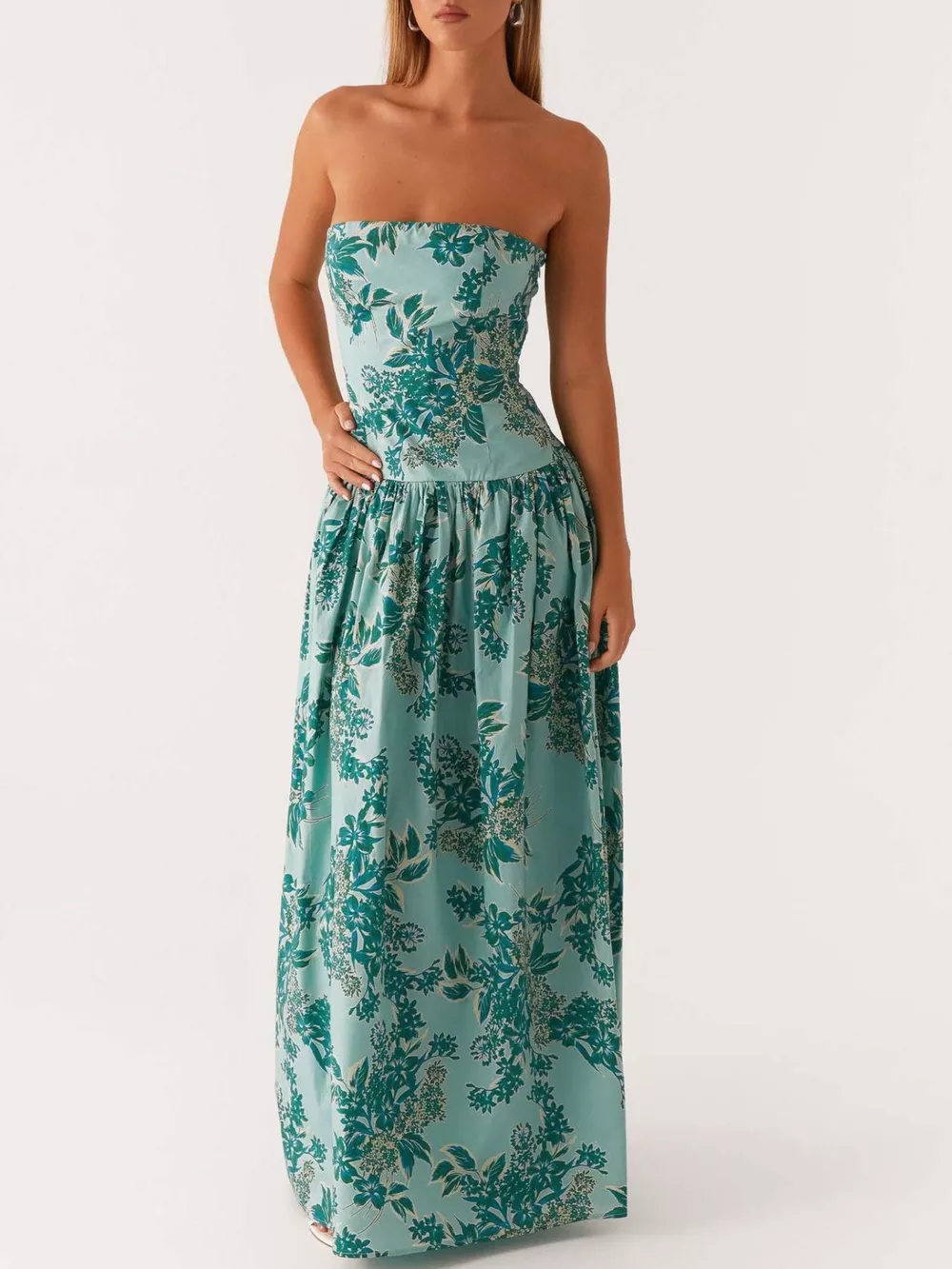 Ruched Printed Tube Maxi Dress