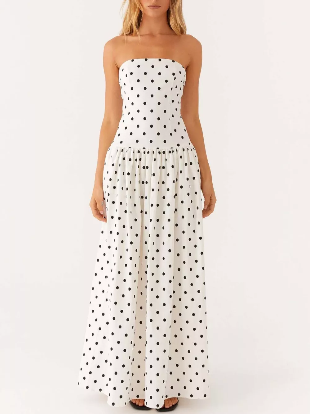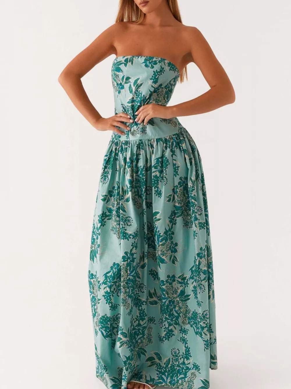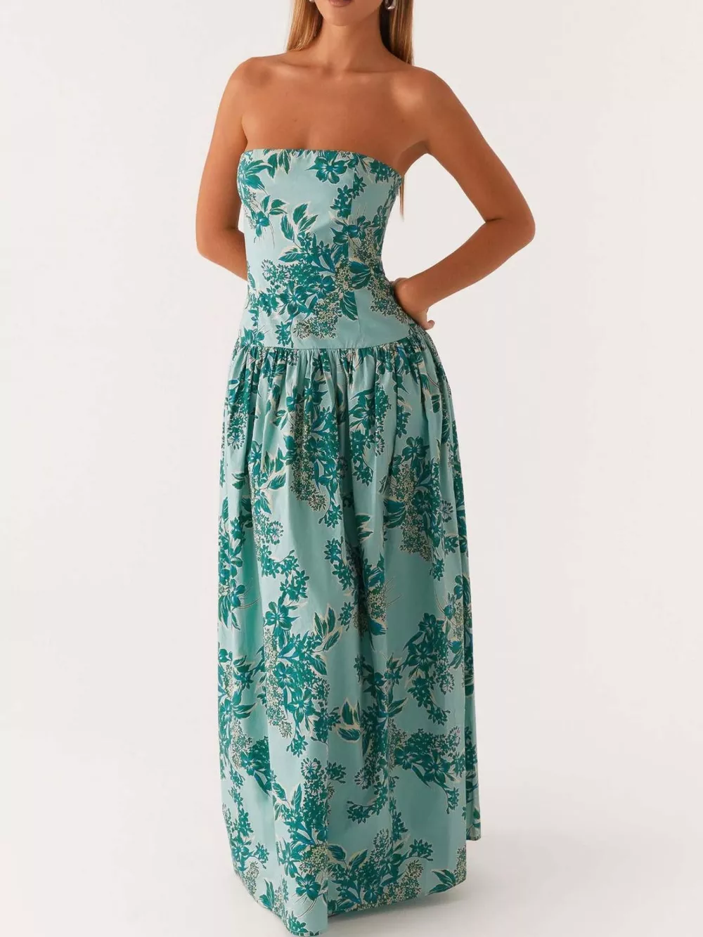 Ruched Printed Tube Maxi Dress
