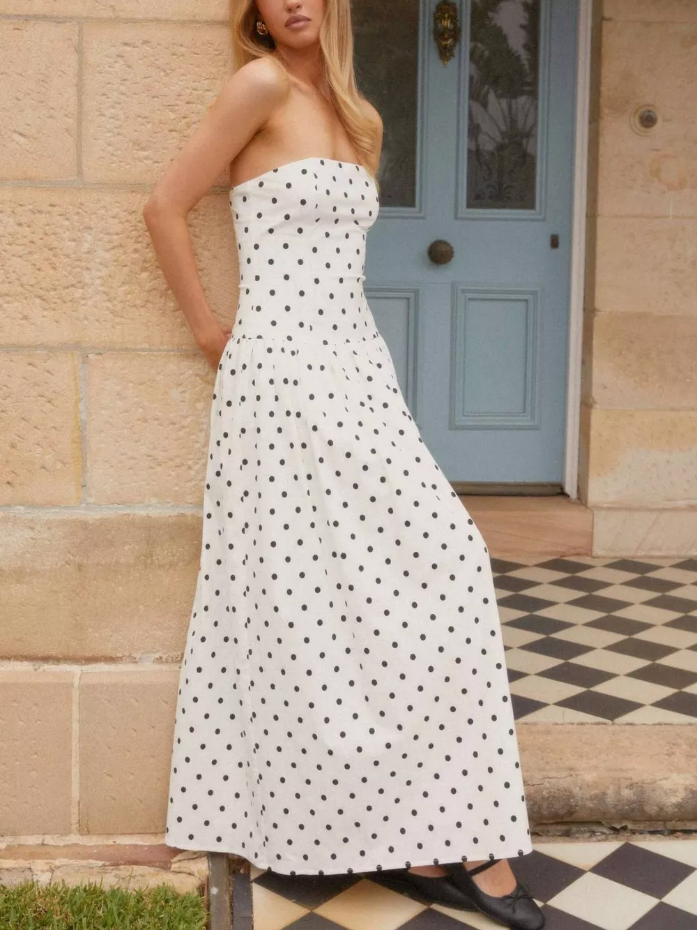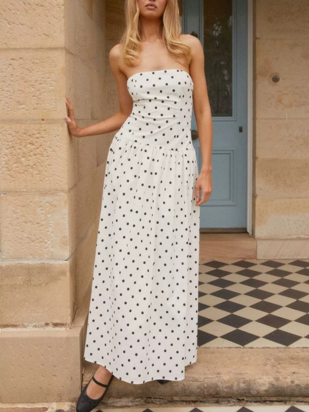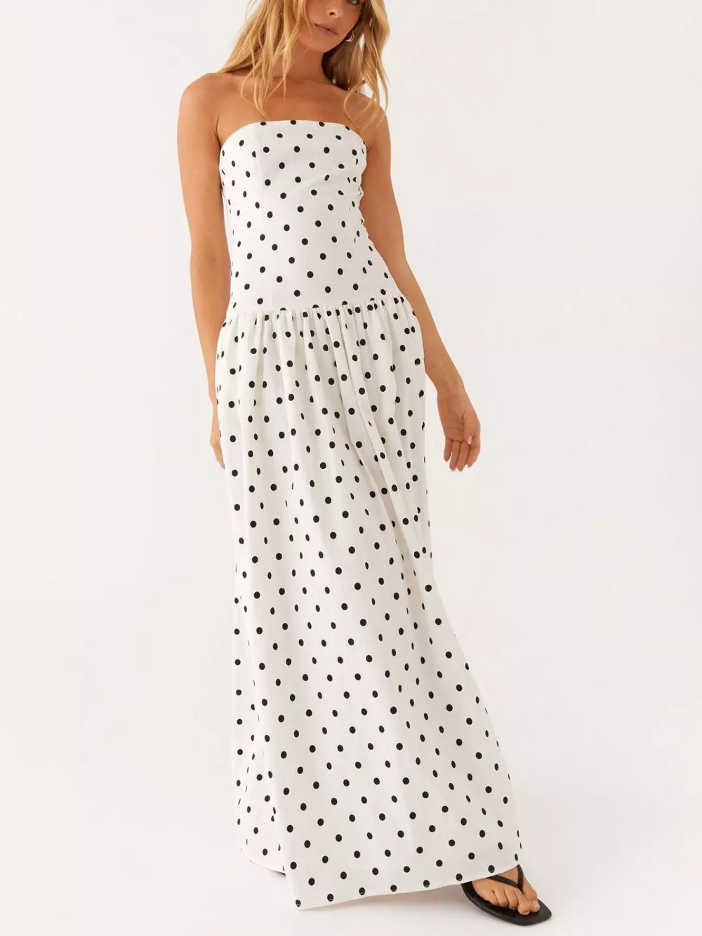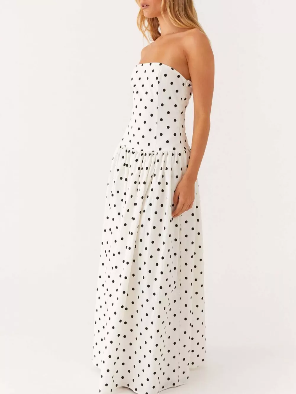 Ruched Printed Tube Maxi Dress