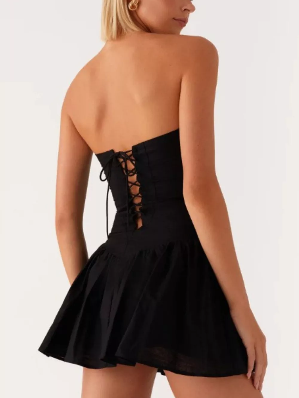 Lace Up Back Tube Dress