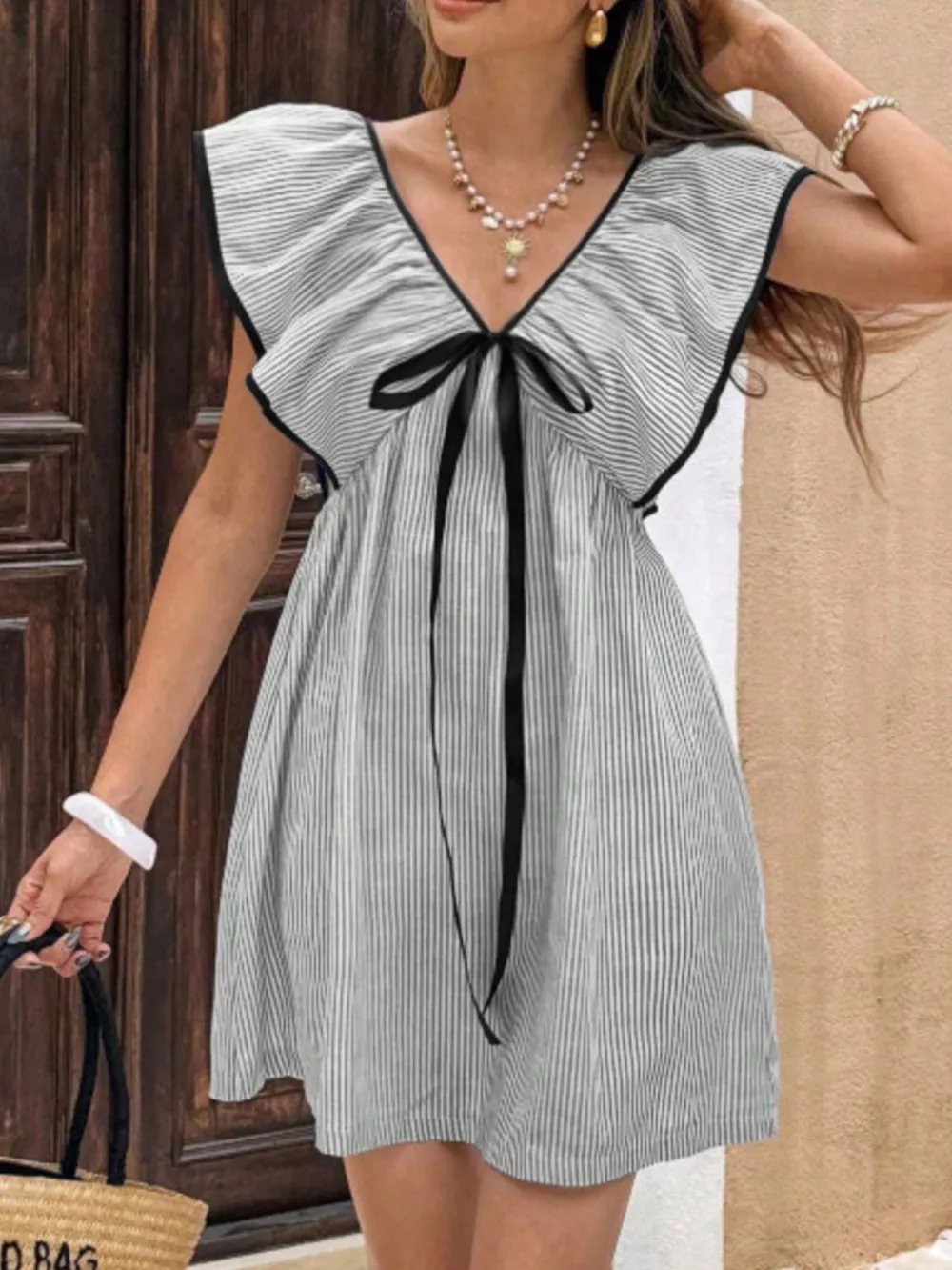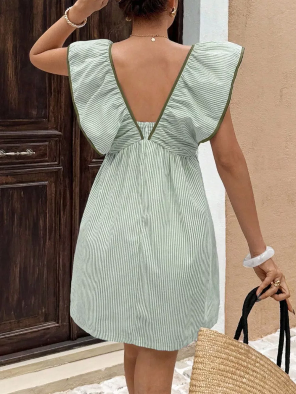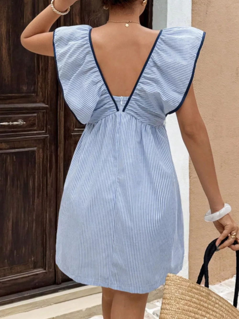 Striped Ruffle Sleeve Mini Dress