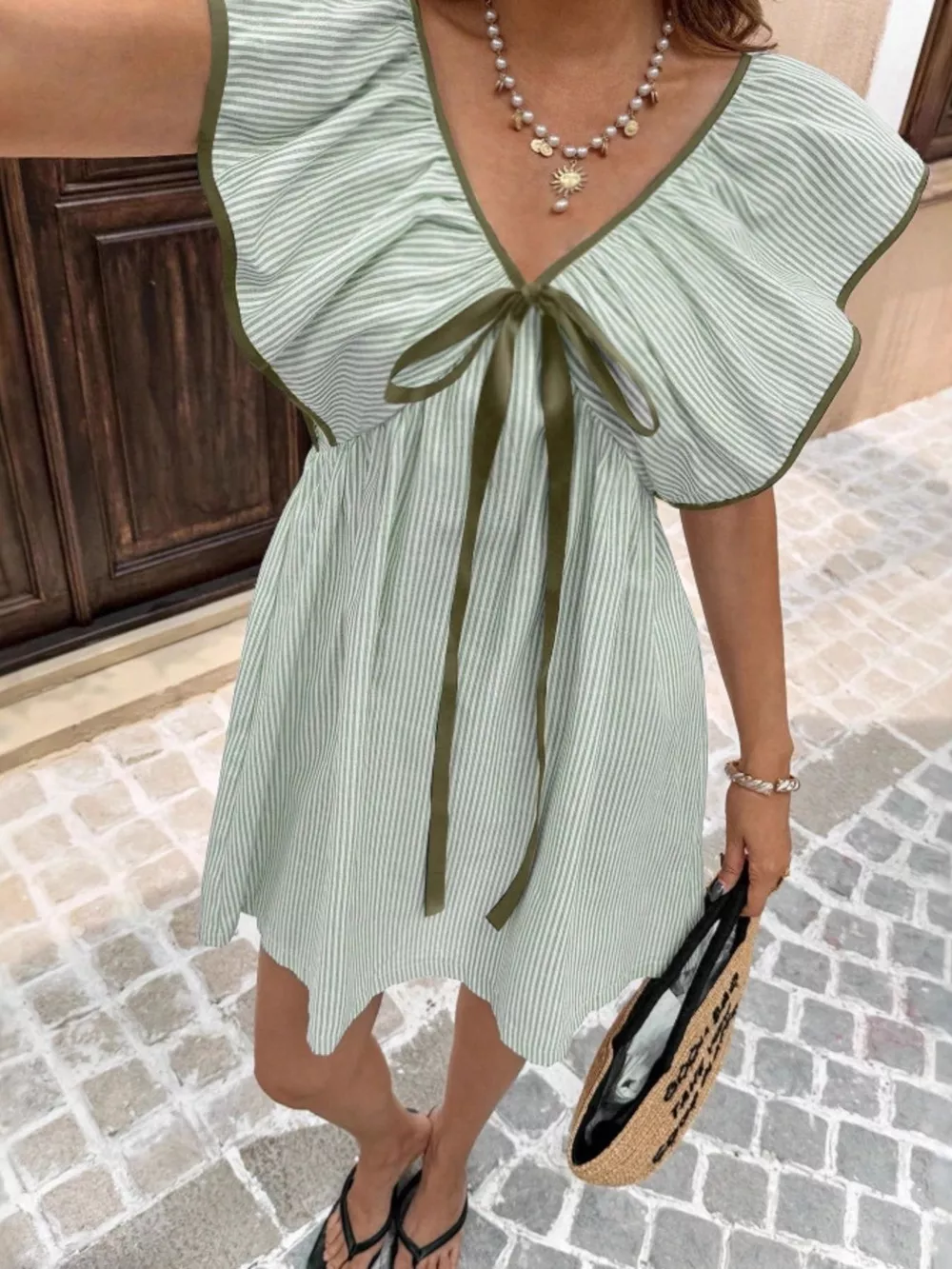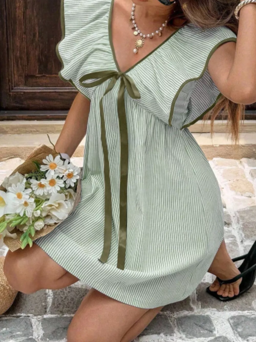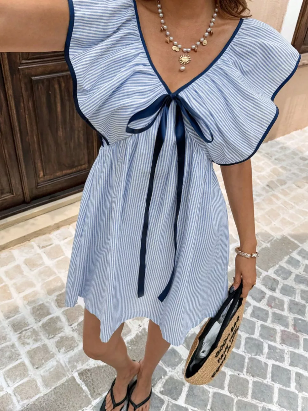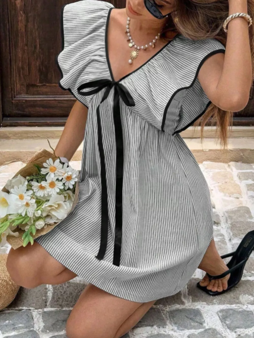 - Features:Bow,Ruffled
