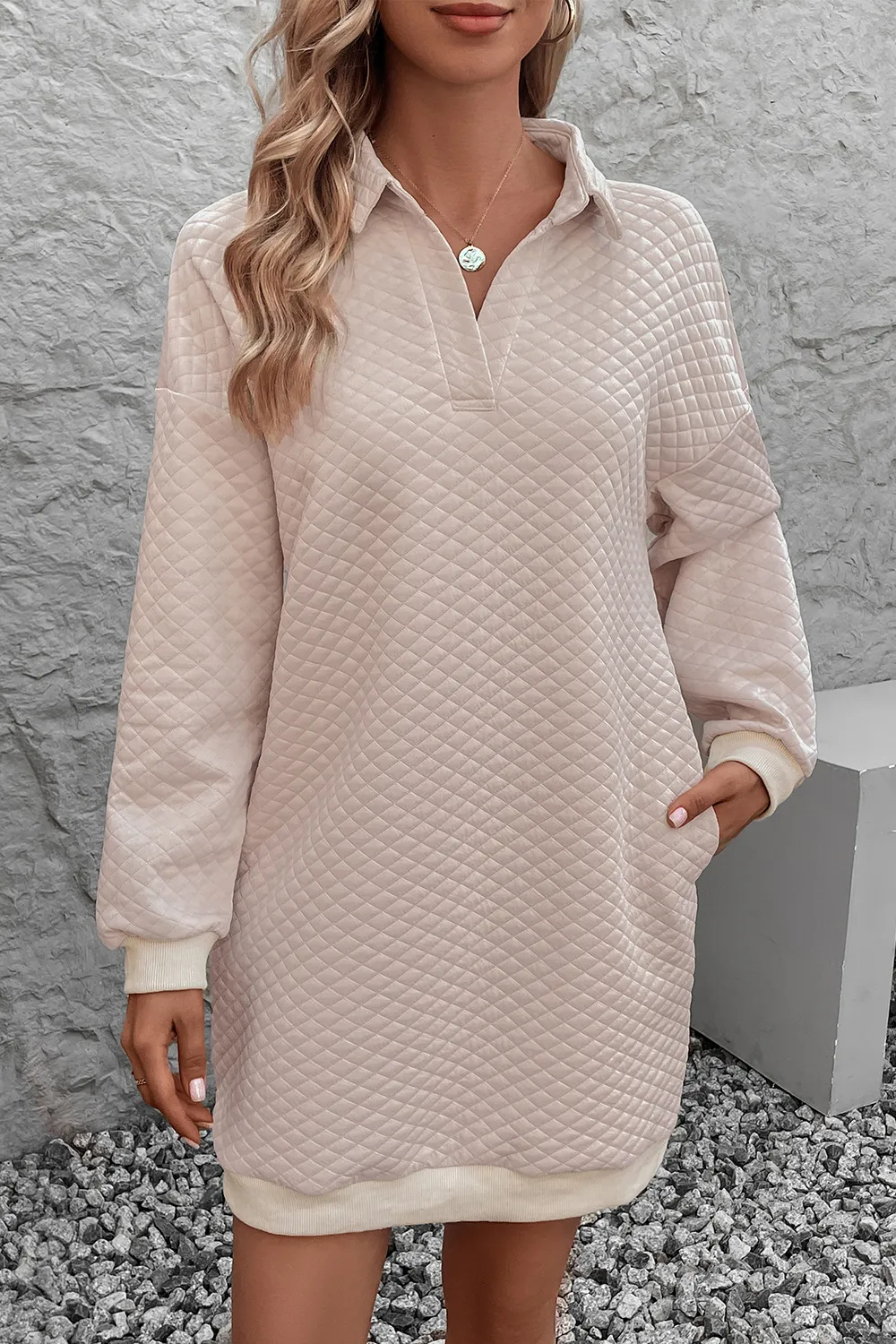 Detailed description of the Perfee Johnny Collar Dropped Shoulder Dress, highlighting quality, design, and unique features that make it appealing to end consumers.